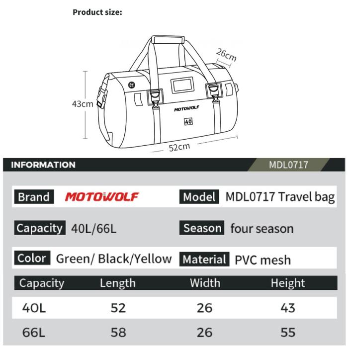 Tas Motor Motowolf Tas Touring Motor Tas Gym Travel Bag Waterproof