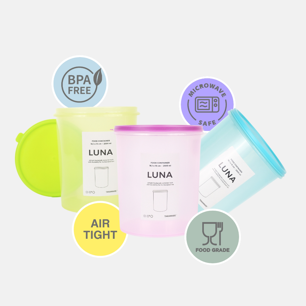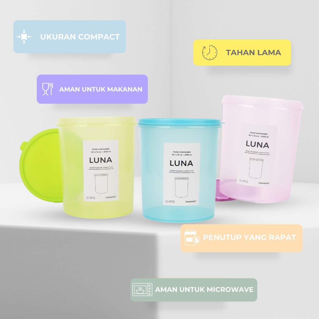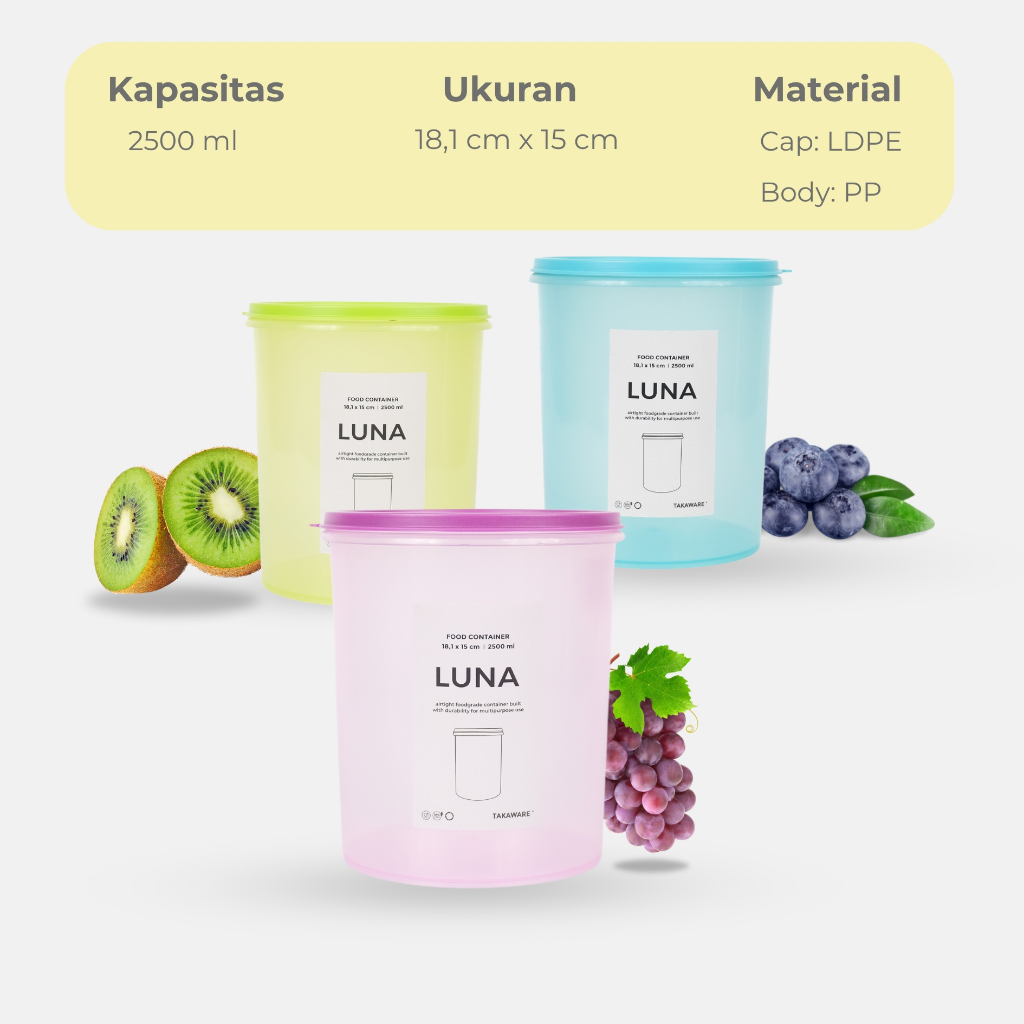 Toples Takaware Luna Set 3pcs Wadah Makanan Plastik Food Container 2500 Ml Toples Plastik Takaware 3pcs