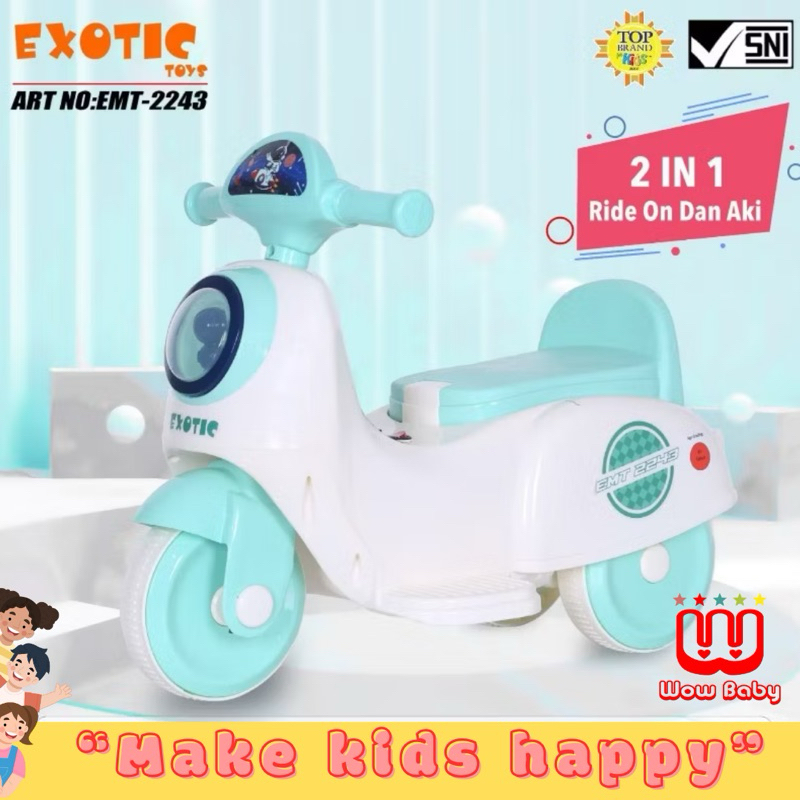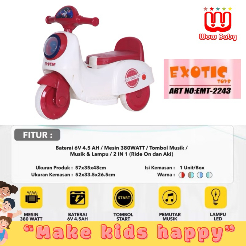 MOTOR ANAK BISA DINAIKI/ EXOTIC VESPA MOTOR AKI EMT-2243 TOLOBIKE MOTOR ANAK MURAH MANUAL DAN AKI 2IN1 ORIGINAL