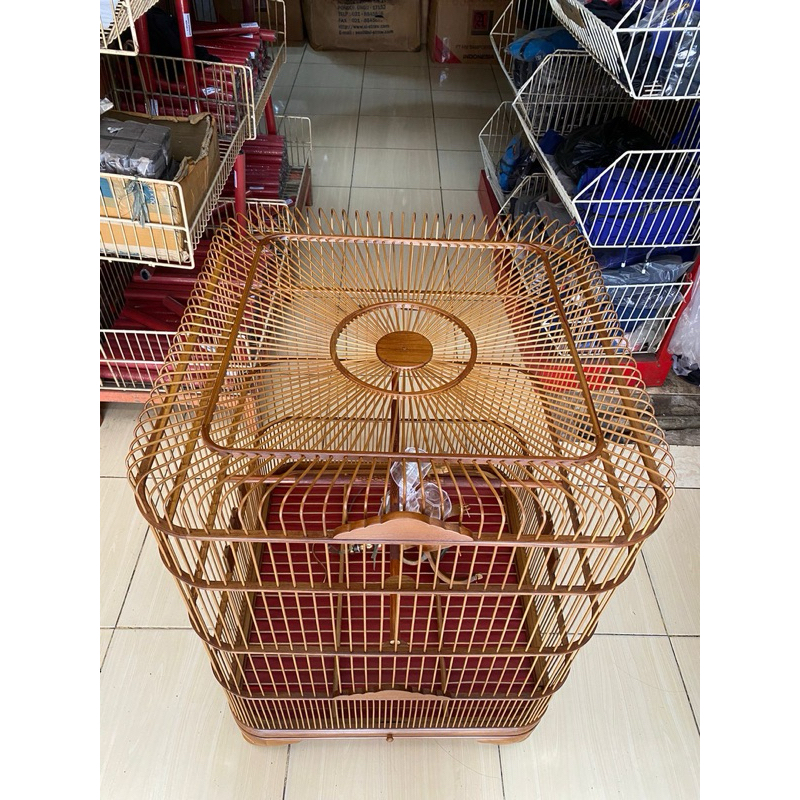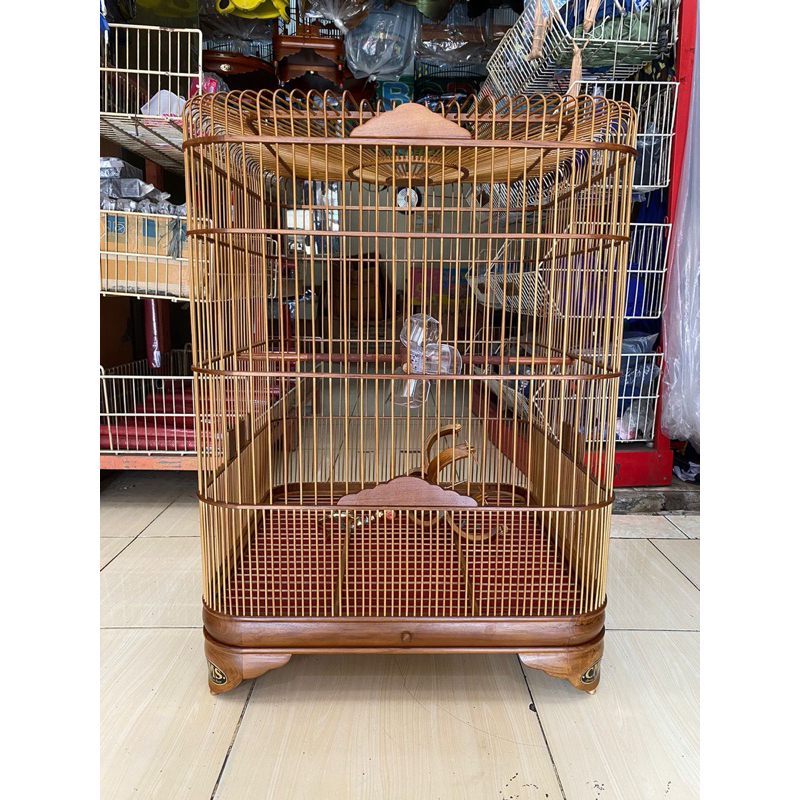 SANGKAR BURUNG OVAL CMS KANDANG JALAK POKSAI CUCAK RAWA BAHAN KAYU JATI RUJI BAMBU 50X50 CM ORIGINAL MURAH