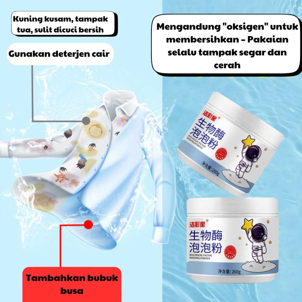 Bubuk effervescent biologis Wuwujie 260g penghilang noda pakaian pemutih yang kuat penghilang noda pakaian menguning