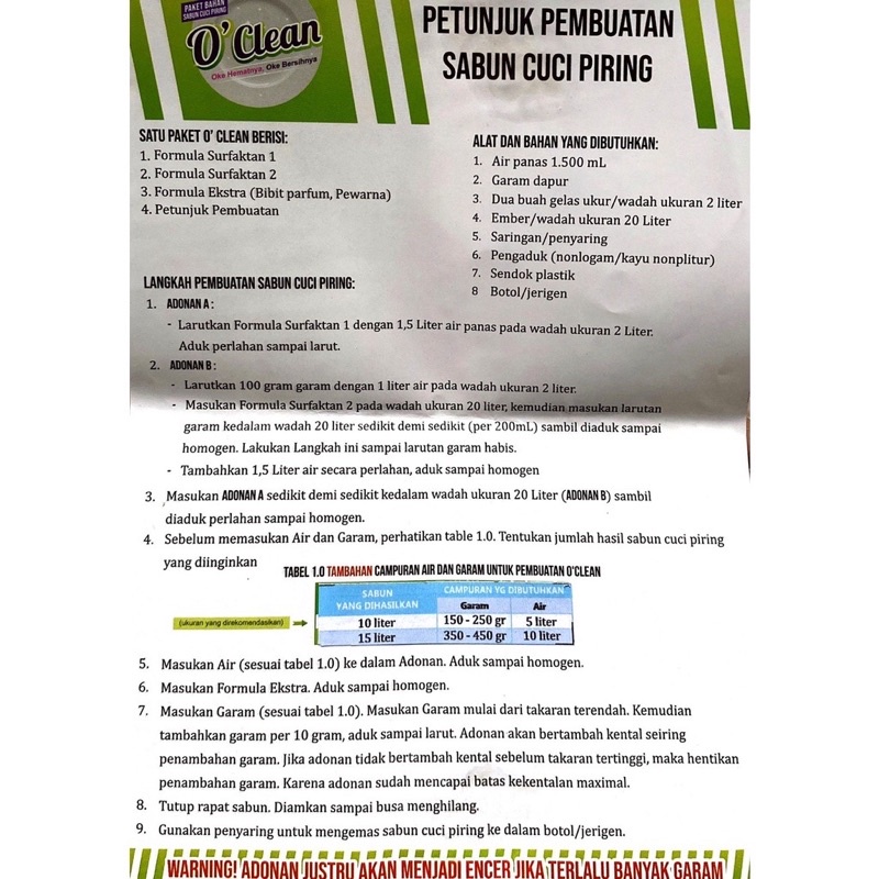 OClean Paket Bahan Sabun Cuci Piring Cair Hemat Wangi Nipis Anti Lemak Bersih Liquid Biang Mama