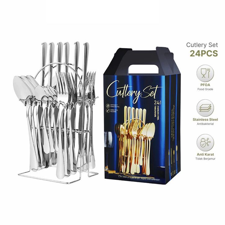 Sendok Elegant Silver Cutlery Set With Holder Alat Makan Fullset Silver Sultan Rak Stainless Steel Hampers Spoon Souven