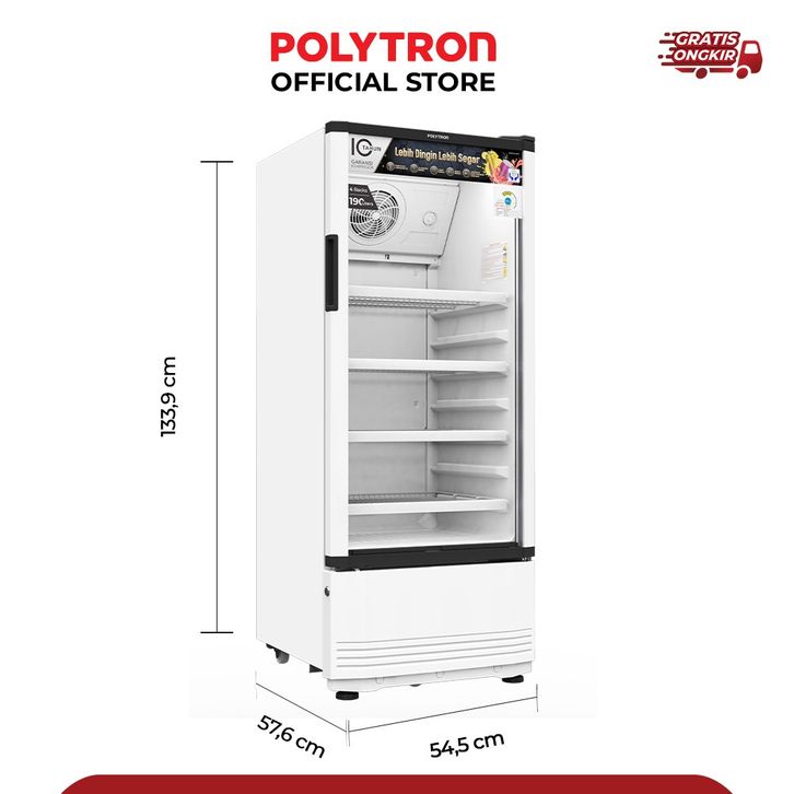 SHOWCASE PENDINGIN POLYTRON SCN 190 LITER 5 RAK DISPLAY SHOWCASE 5 SUSUN KULKAS 1 PINTU KULKAS PENDINGIN MINUMAN WARUNG