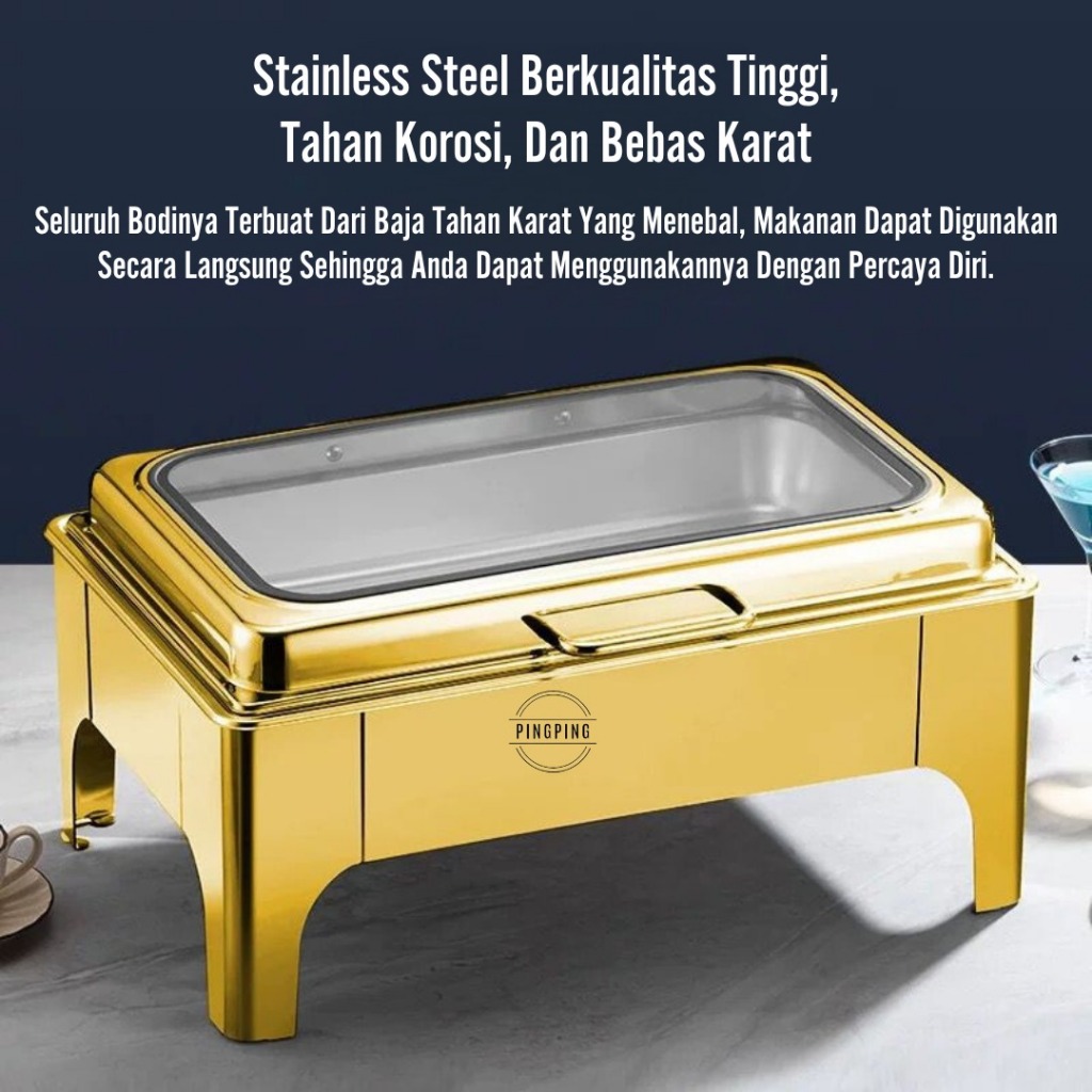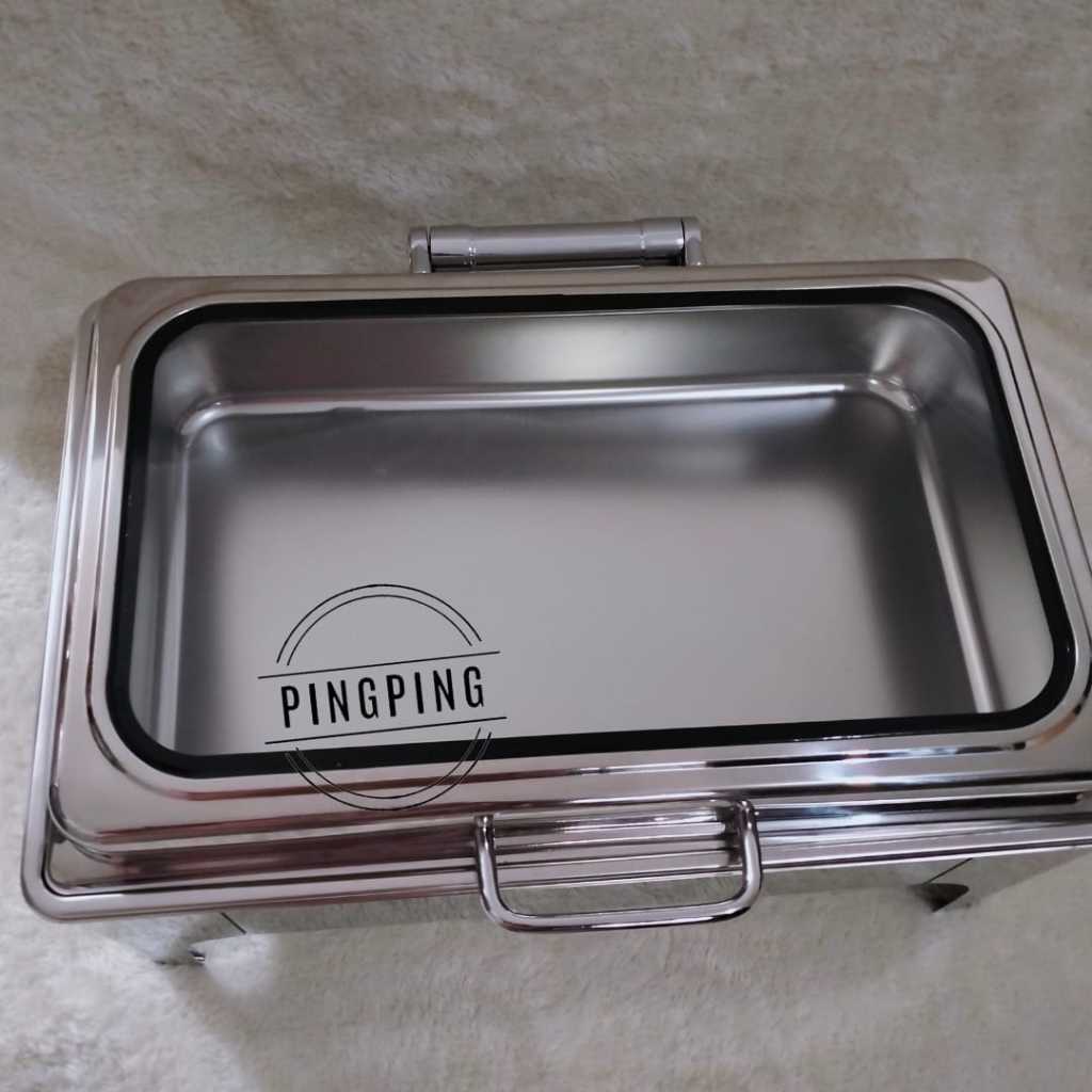 [Star] Chafing Dish / Rolltop Segi Kaca Catering Stainless Steel 9L /set tempat lauk dan sayur/tempat lauk prasmanan/set