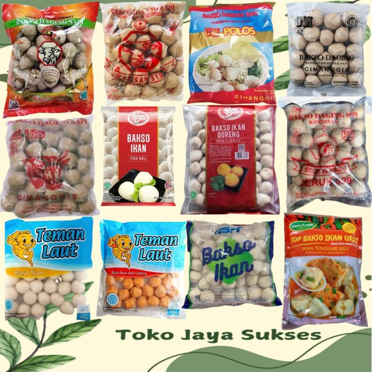 Warisan bakso urat, Warisan bakso sapi 319, Cimanggis bakso polos, Cimanggis bakso ayam & sapi, Cimanggis CM168, Pak den bakso ikan 500gr, Pak den bakso ikan goreng 500gr, Pak den bakso lobster 500gr, Jeruk 099 bakso sapi, Teman laut bakso ikan 500gr, Teman laut bakso ikan & udang 200gr, Teman laut bakso ikan & udang 500gr, BFI bakso ikan 500gr, Ellafroze bakso ikan 500gr, Sup bakso ikan urat tenggiri 150gr
