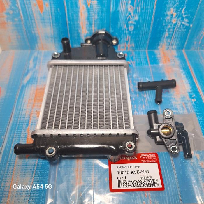 Paketan radiator plus thermostat assy dan pipa sambungan radiator motor honda vario 110 lama karbu