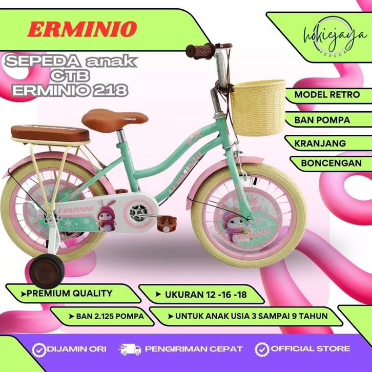 SEPEDA MINI KERANJANG ANAK PEREMPUAN RETRO ERMINIO USIA 3 SAMPAI 8 TAHUN SEPEDAH ANAK PEREMPUAN RODA 3 BONCENGAN