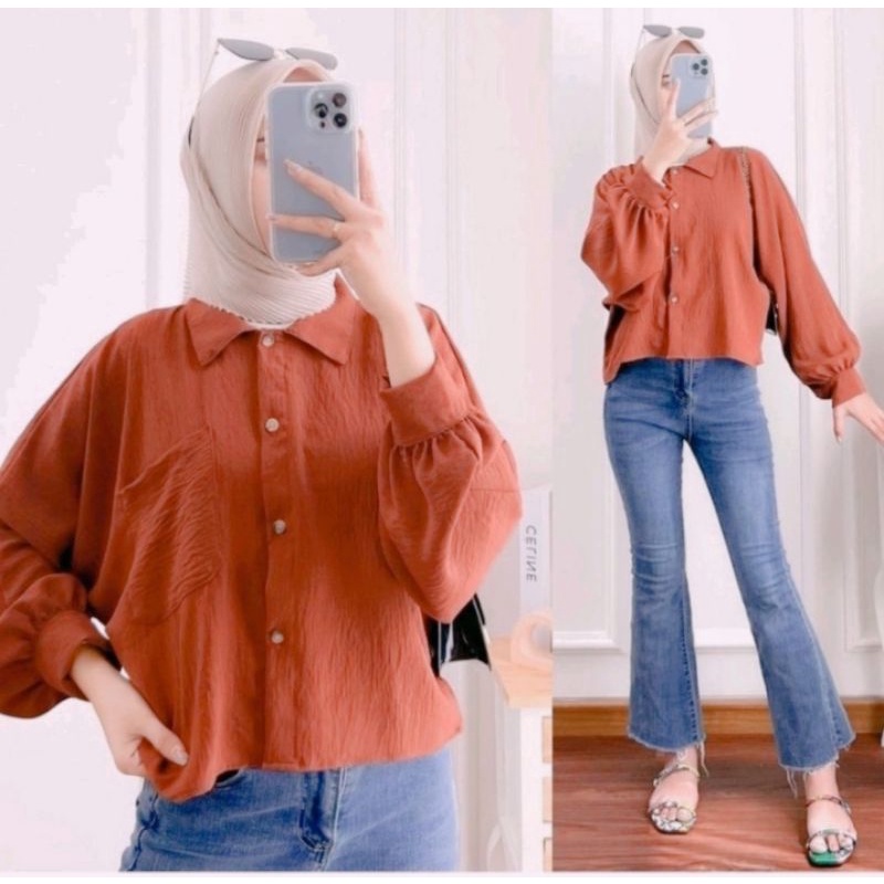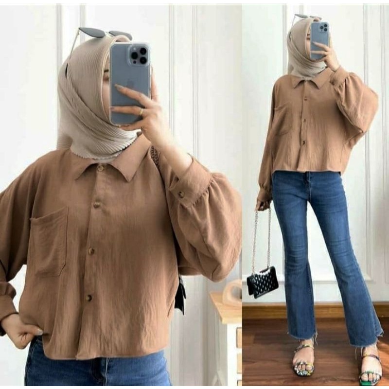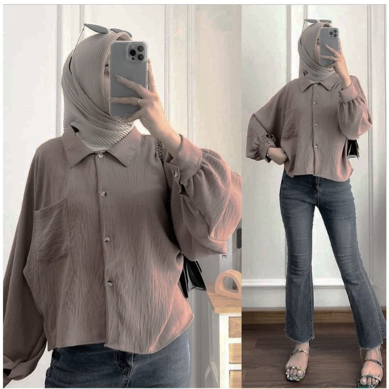 (Gratis Ongkir) MEISYA - Kemeja Crop Malvin Crinkle Lengan Panjang Kekinian/Blouse Wanita Korean style