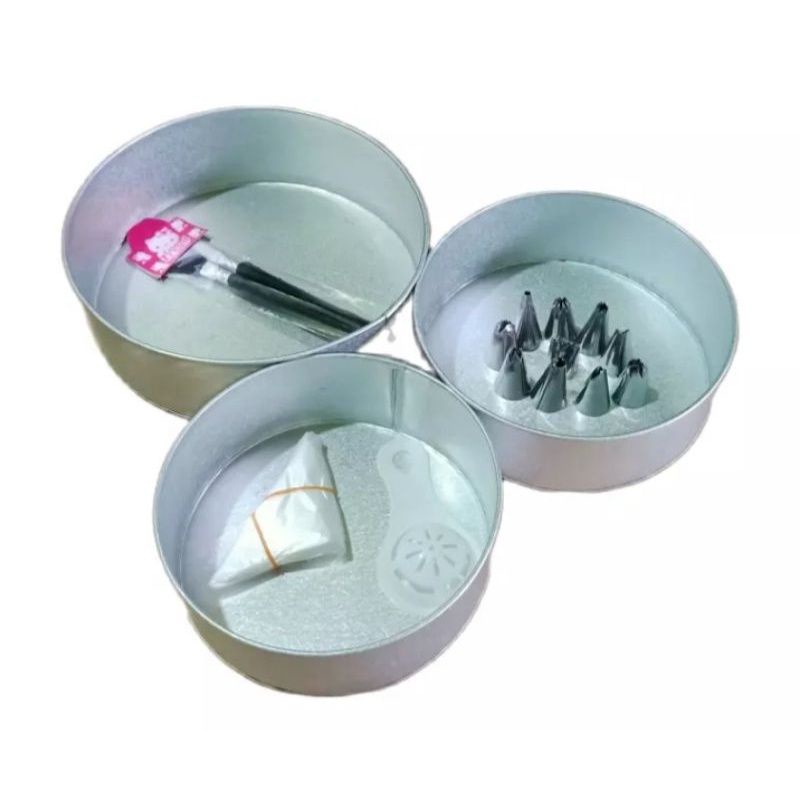 PAKET LENGKAP LOYANG BULAT ISI 3 PCS / LOYANG KUE / CETAKAN KUE /ALAT DEKORASI BAKING