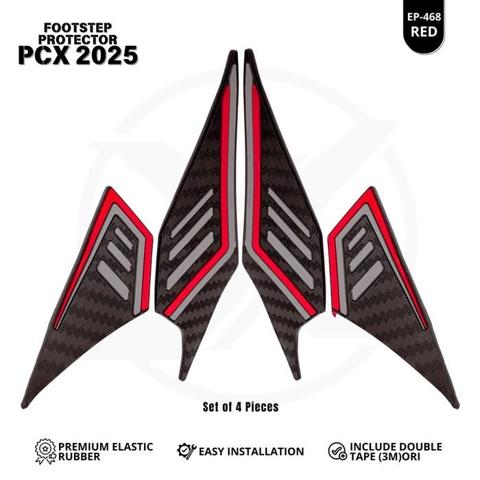 FootStep Protector PCX 160 2025 RoadSync - Karet Pelindung Pijakan Samping Motorcycle Exie Art - RED