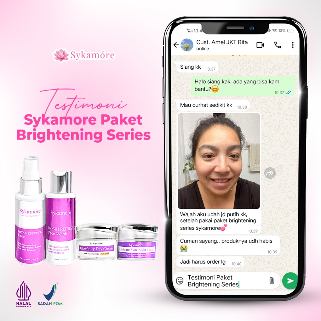 SKINCARE WANITA GLOWING BPOM / SYKAMORE PAKET BRIGHTENING SERIES SKINCARE MENCERAHKAN WAJAH WITH NIACINAMIDE DNA SALMON