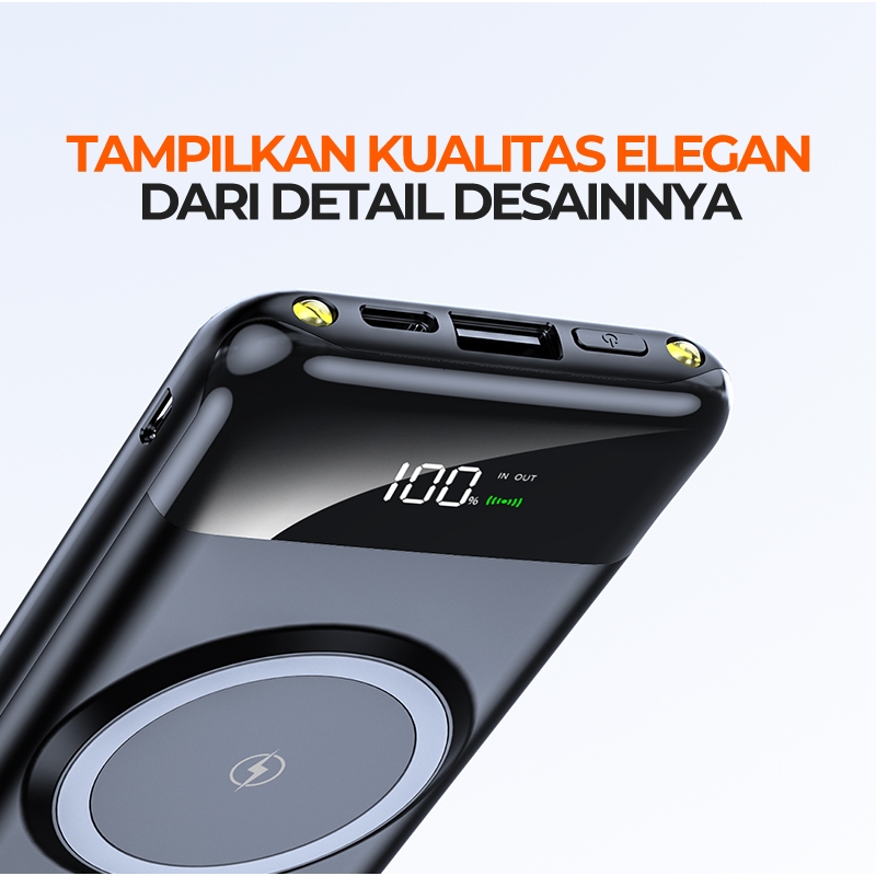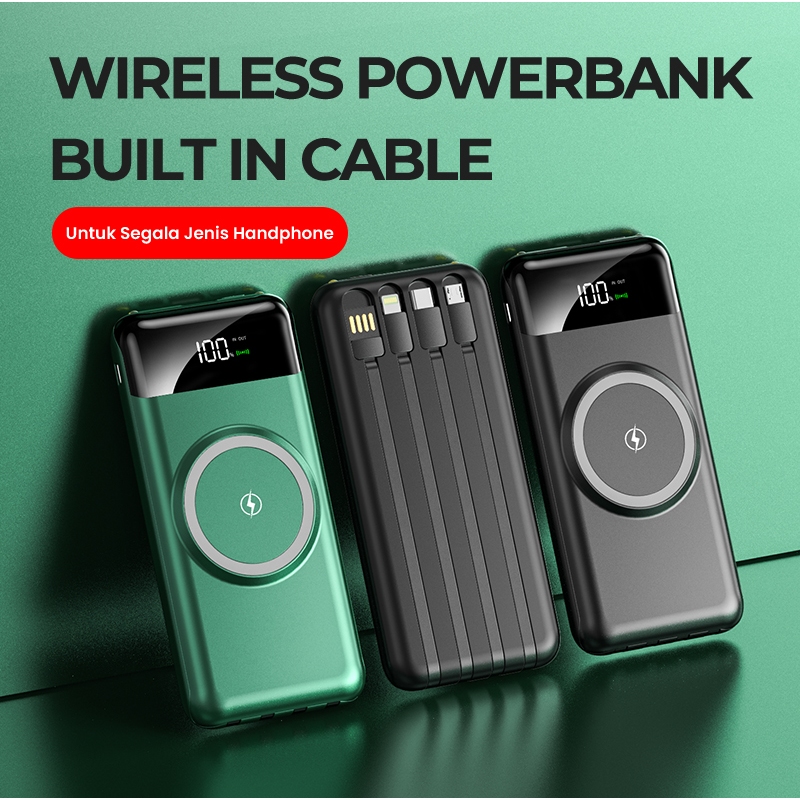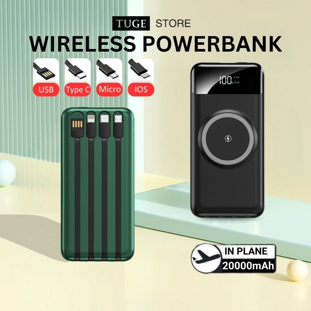 TUGE Wireless Powerbank Power Bank 20000mAh 6 Output 2 Input LED Display Built in Cable untuk iPhone Type C Micro Pawerbank Fast Charging Bergaransi