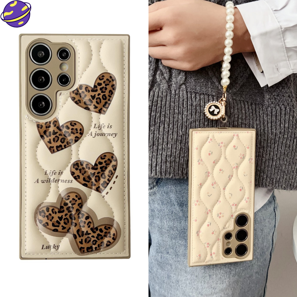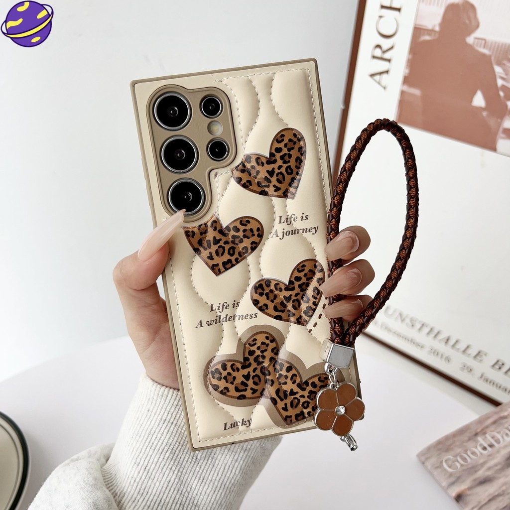 [PROMO] DP 0 LOVE LEOPARD PRINT DOWN JACKET WRISTBAND CASE SUITABLE FOR SAMSUNG GALAXY S25 S24 S23 ULTRA
