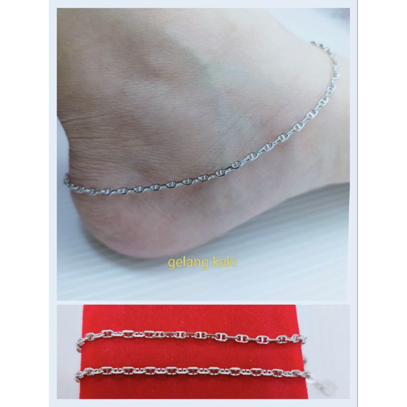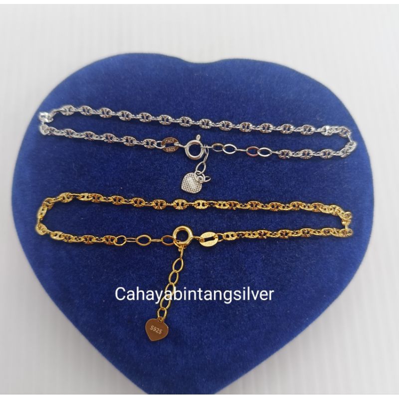 GELANG KAKI FASHION/GELANGG KAKI WANITA.PERAK ASLI 925 LAPIS MAS(BISA JUAL KEMBALI)