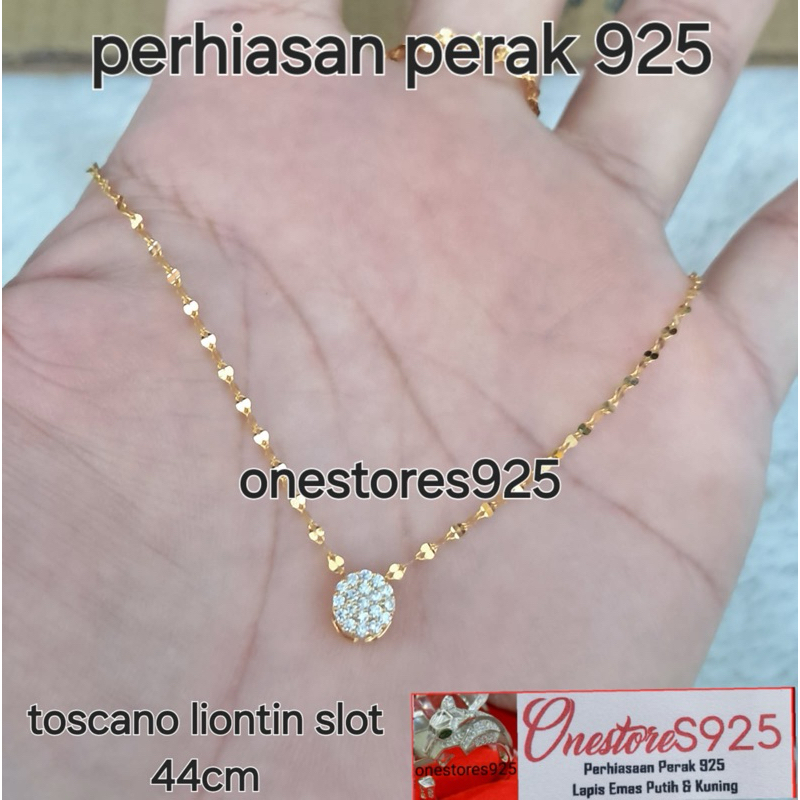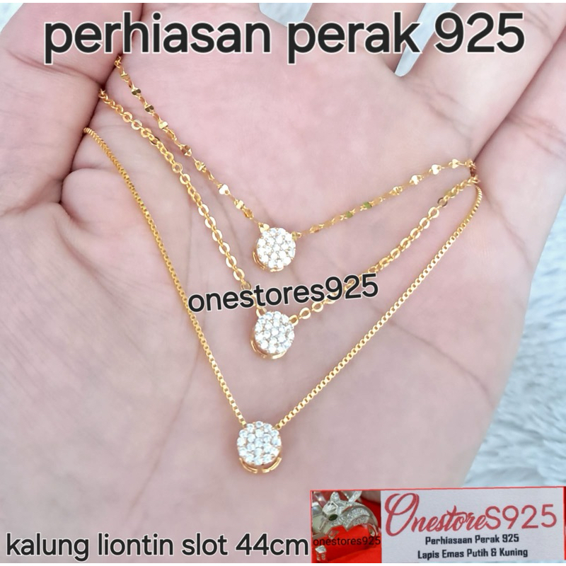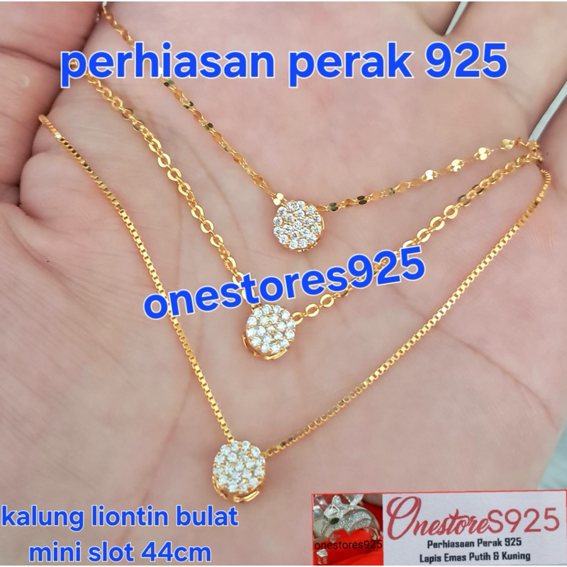 KALUNG PERAK 925 ASLI LIiONTIN SLOT BULAT MINI LAPIS EMS KUNING