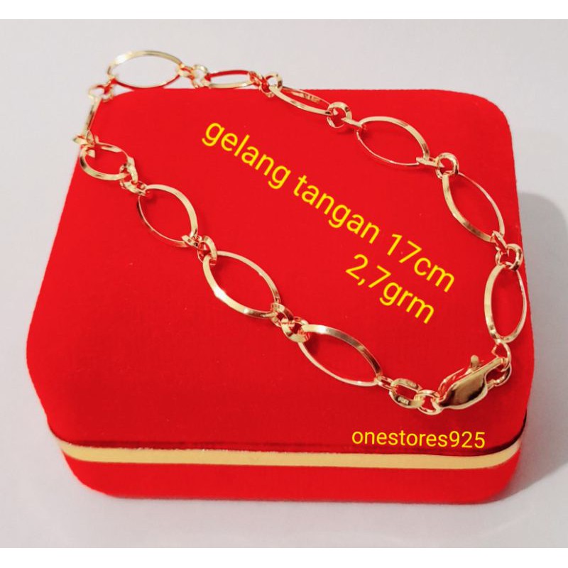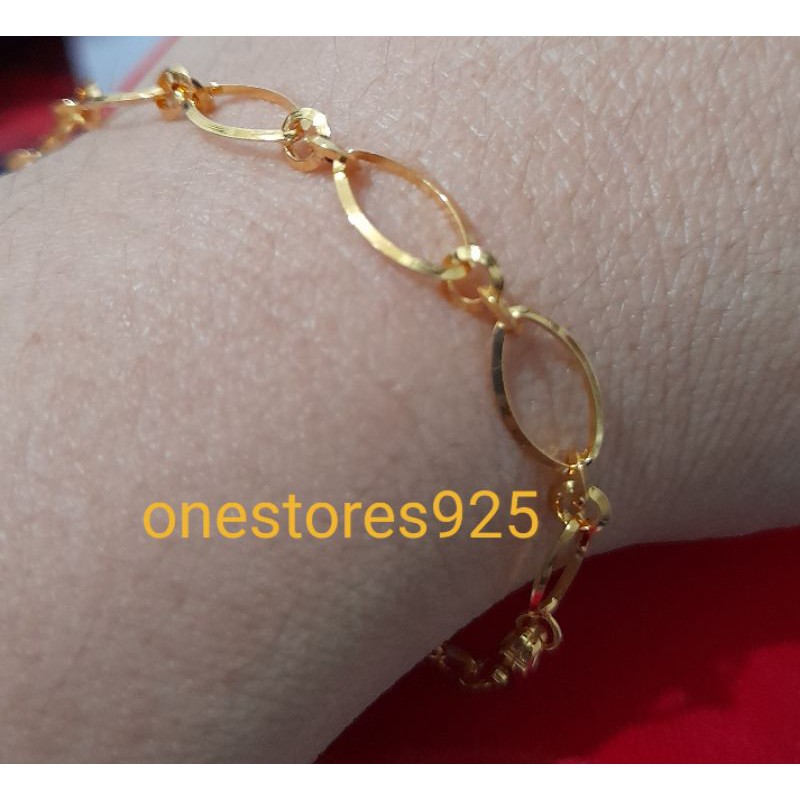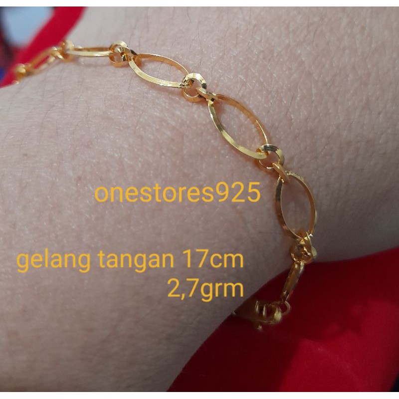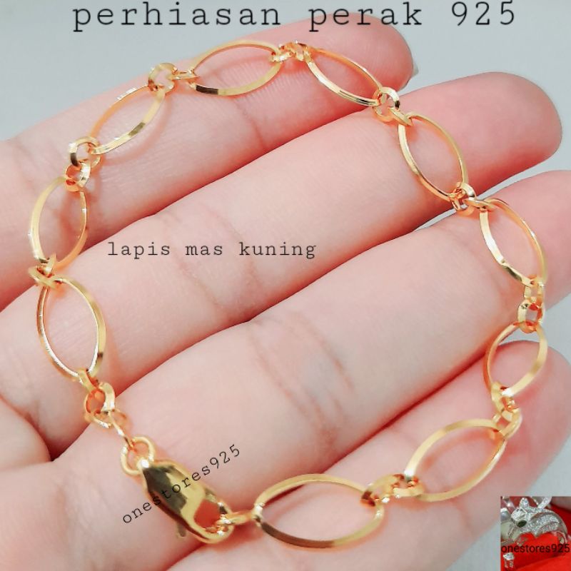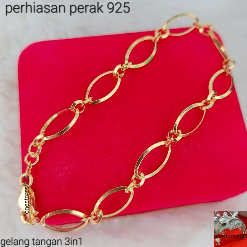GELANG MOCCA PERAK WANITA ASLI SILVER 925 3IN1 KUNING 16,5cm dan 17cm (35)