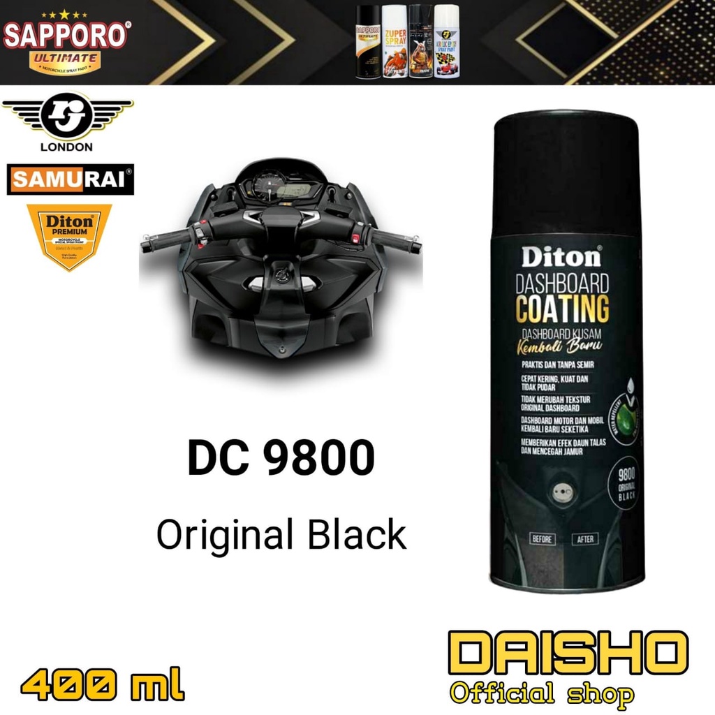 DITON PREMIUM 400ml DC 9800 DASHBOARD COATING BLACK HITAM PILOX PILOK CAT SEMPROT SPRAY PAINT EFEK DAUN TALAS