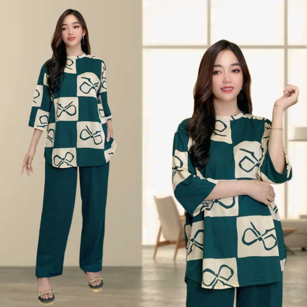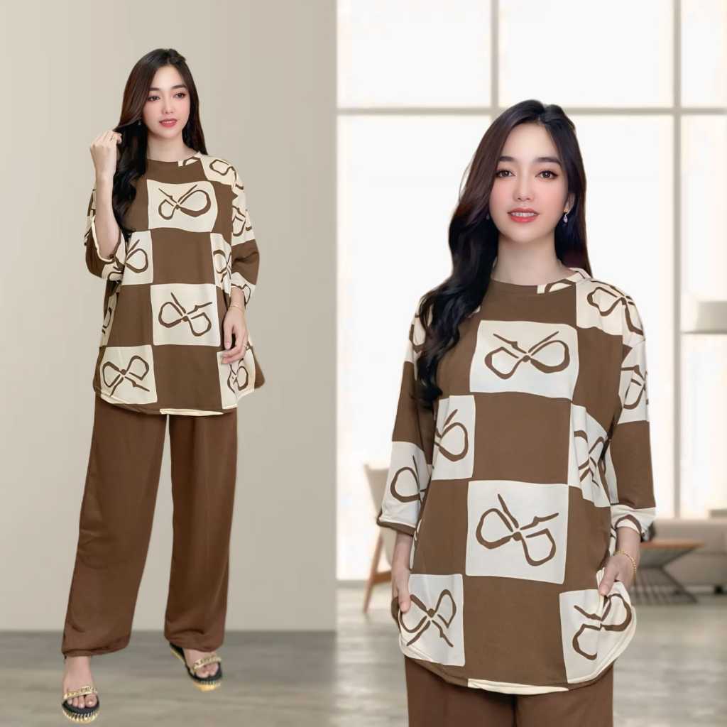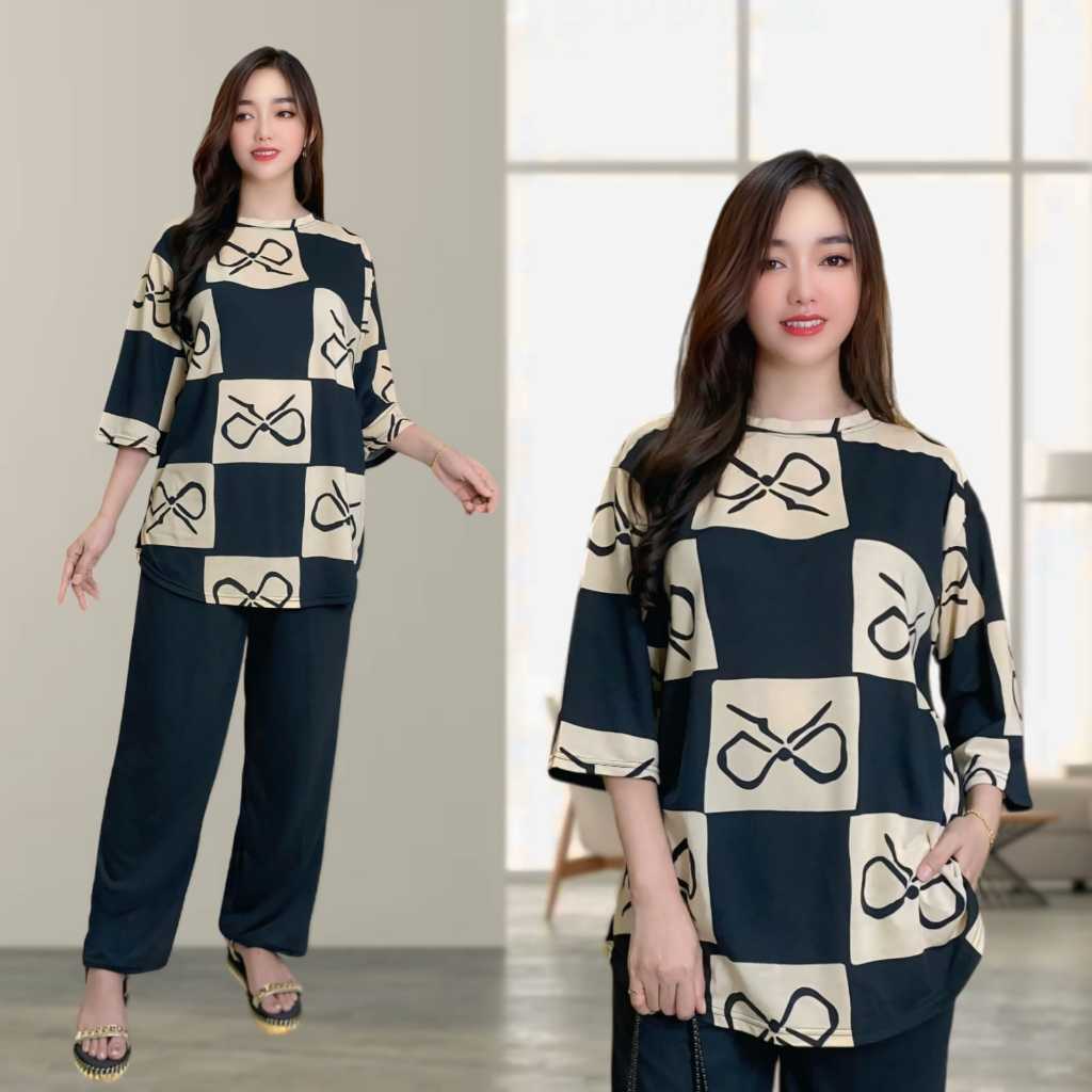 RANIA SETELAN WANITA LD 120 & LD 130 CELANA LURUS DAN ATASAN OVAL BELAHAN KIRI DAN KANAN OVERSIZE WANITA celana lurus ka