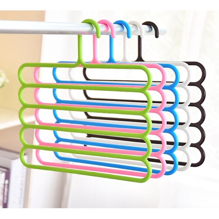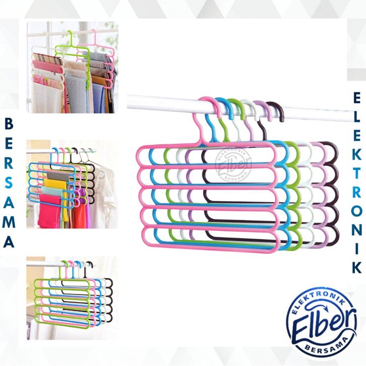 HL0048 Hanger Baju Susun 5 in 1 Tebal Anger Plastik Gantungan Jilbab Handuk Serbaguna Y1310