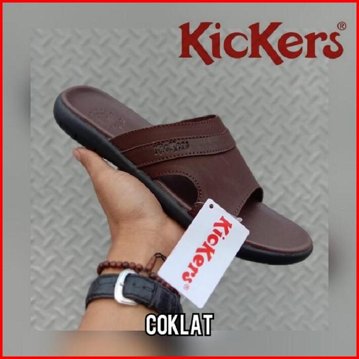 Promo Sandal Selop Pria Kickers Sendal Slop Bahan Kulit Nyaman Dipakai Anti Slip Shoes