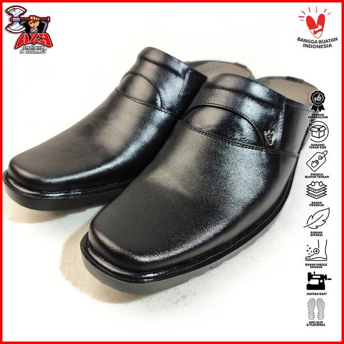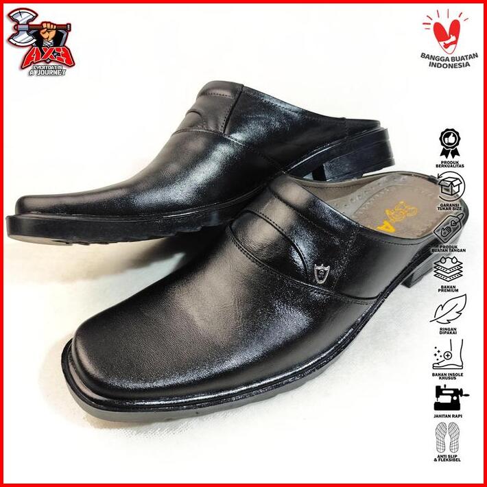 Ax3 Sandal Selop Pria Kulit Asli Kj Sandal Slop Pria Bustong Kulit Sapi Asli Karet Shoes