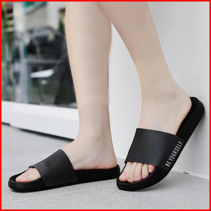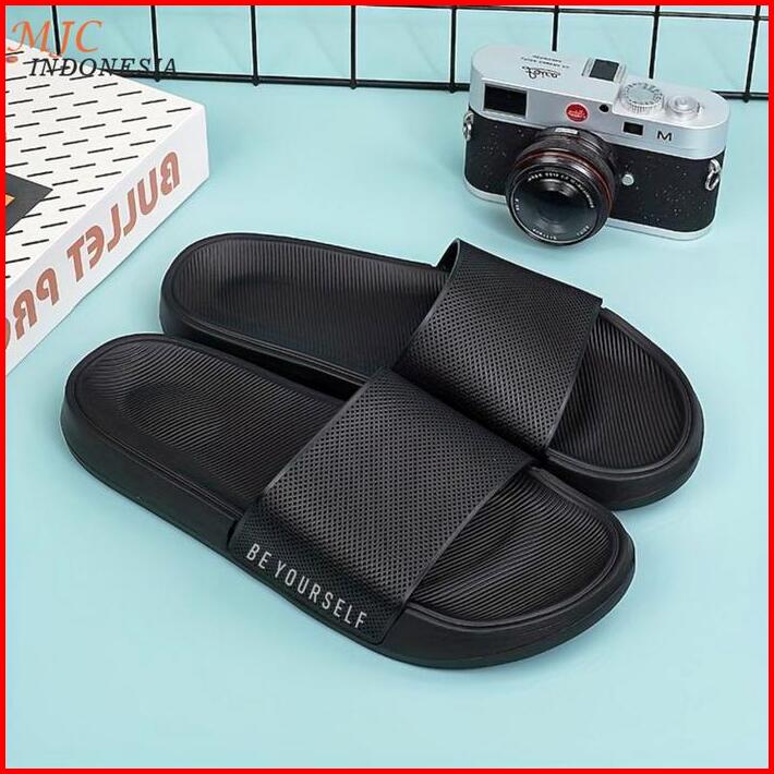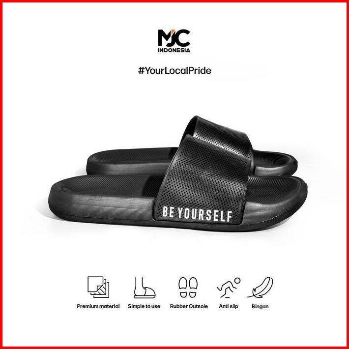 Mjc Indonesia Slop Pria Distro Selop Pria Wanita Sendal Slip On Full Hitam Sandal Selop Anti Slip Shoes 36-44 Luar Ruang