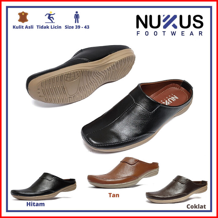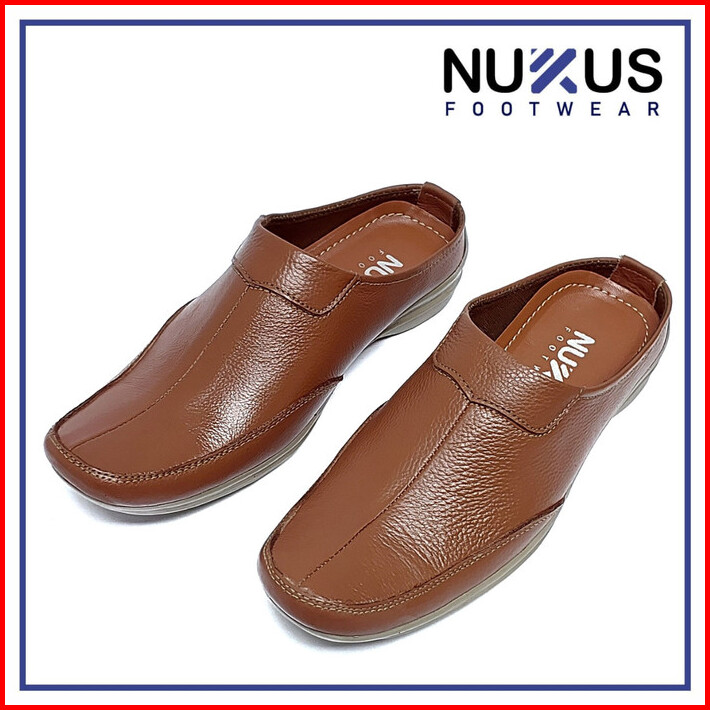 Nukus Sepatu Sandal Selop Bustong Pria Kulit Sapi Asli