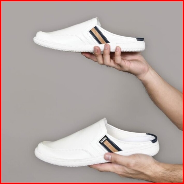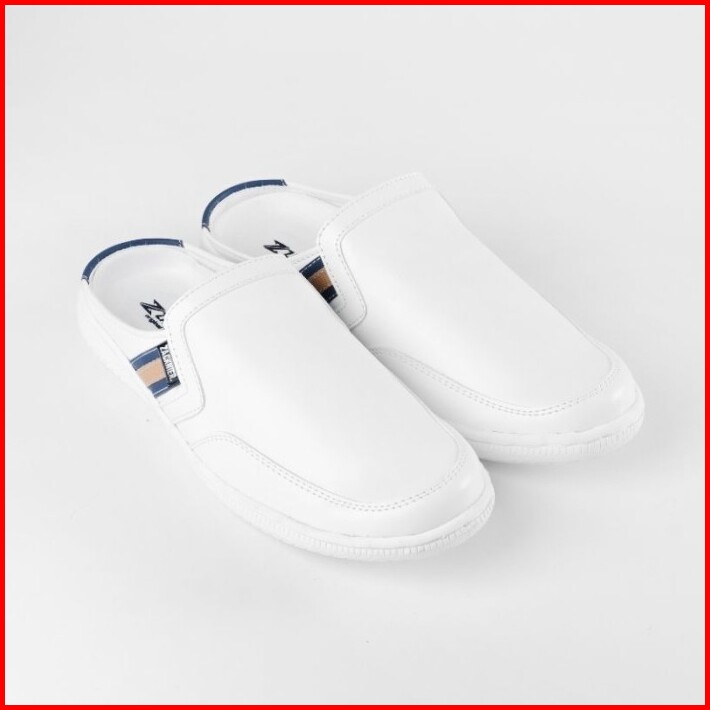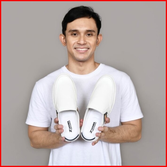 Terlaris Sepatu Sandal Pria Slip On Bustong Selop Warna Putih Hitam
