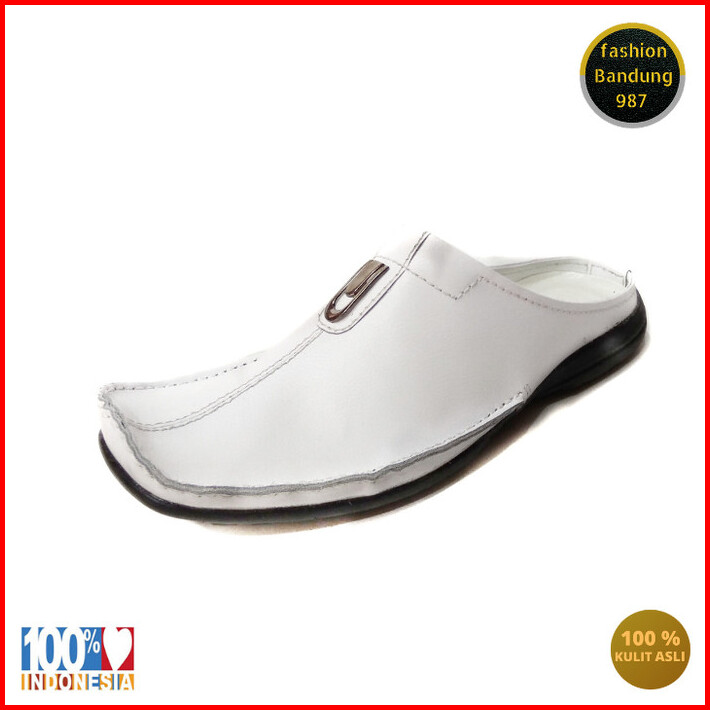 Sepatu Sandal Pria Putih Bahan Kulit Asli Bustong Putih Clw023