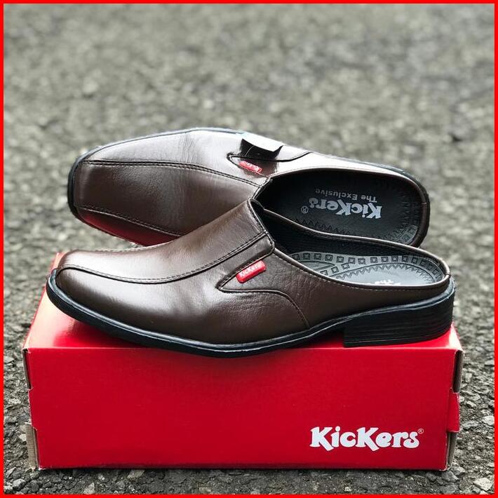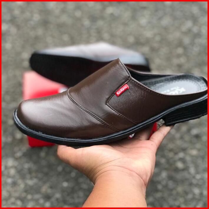 Sandal Sepatu Slop Kulit Pu Kickers Bustong Terbaru Black Shoes Pria Swimsuit Fabric S