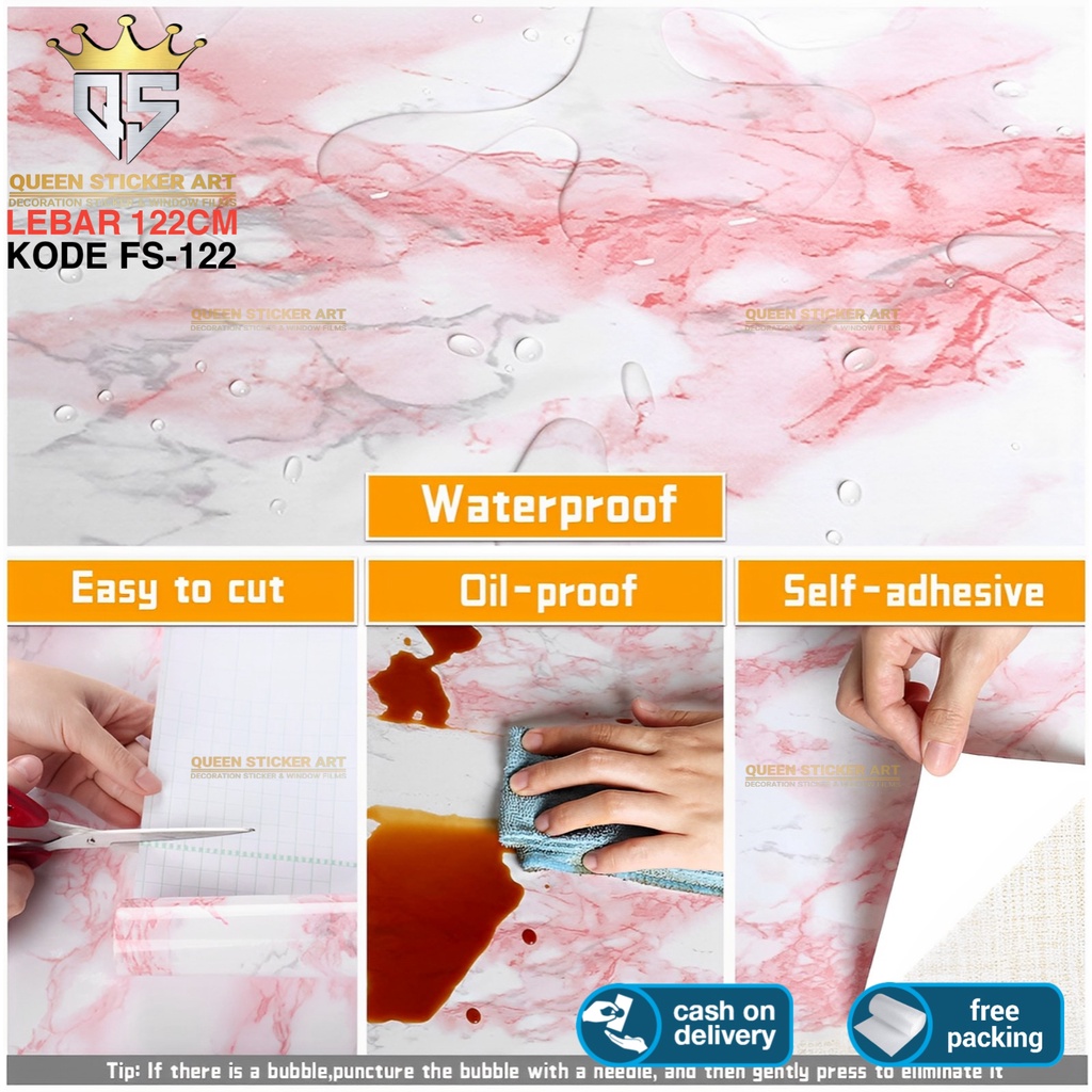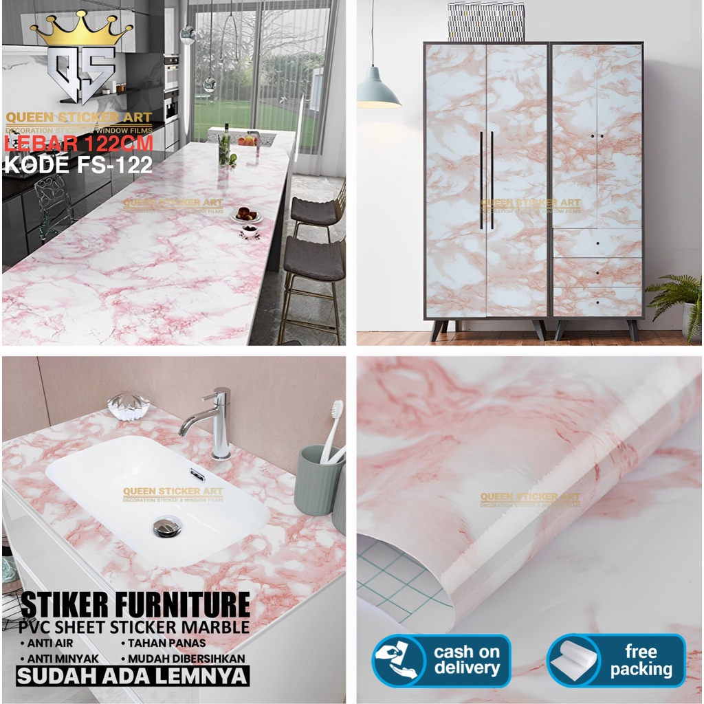 Stiker Marmer Marble Glossy Tebal Pelapis Meja Kayu Kaca Lemari Dinding Dapur Anti Air Minyak dan Panas Wallpaper Walpaper Sticker Lebar 122cm