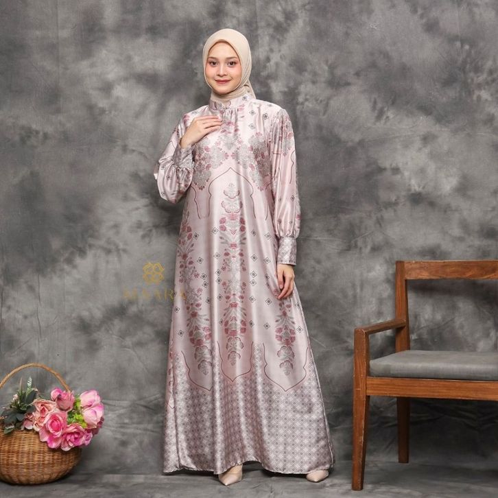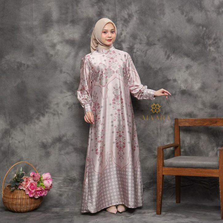 Gamis Lebaran 2026 Model Terbaru Dress Wanita Nadira Silk Motif Mewah Elegan Big Size Jumbo