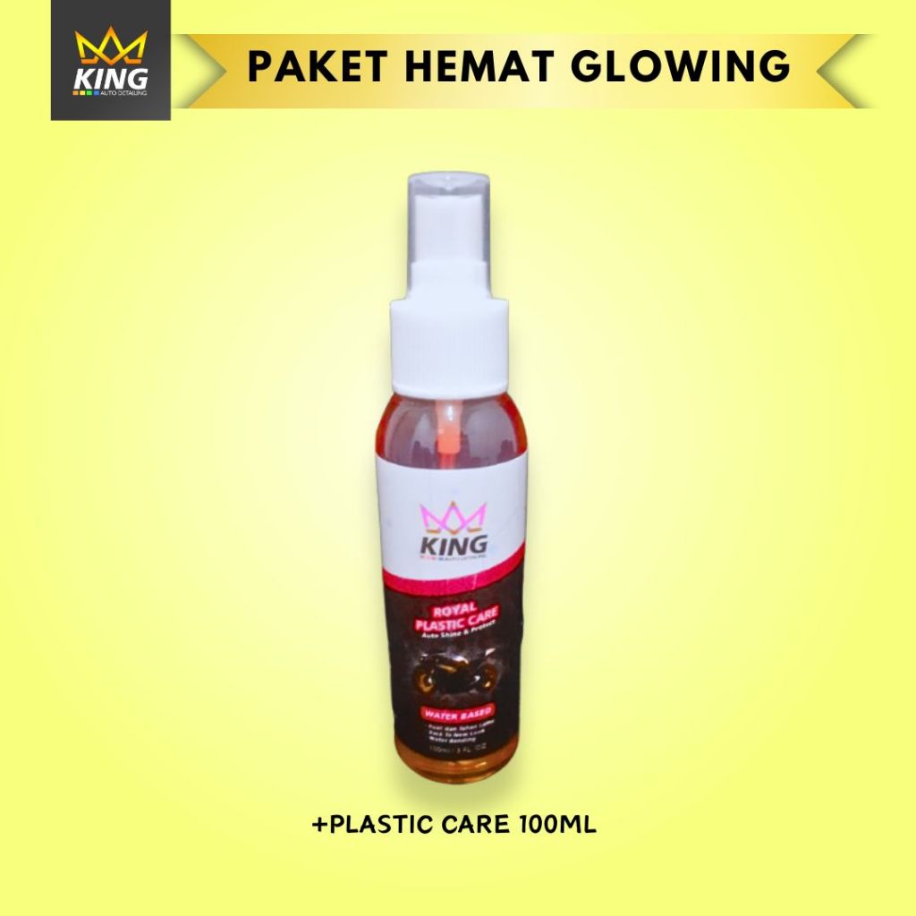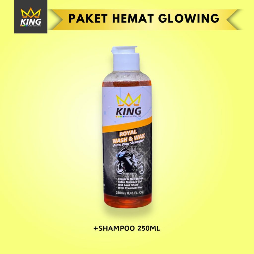 Paket King Hemat Glowing SHAMPO MOTOR MOBIL WASH AND WAX plus INSTANT COATING dan PLASTIC CARE perawatan kendaraan King