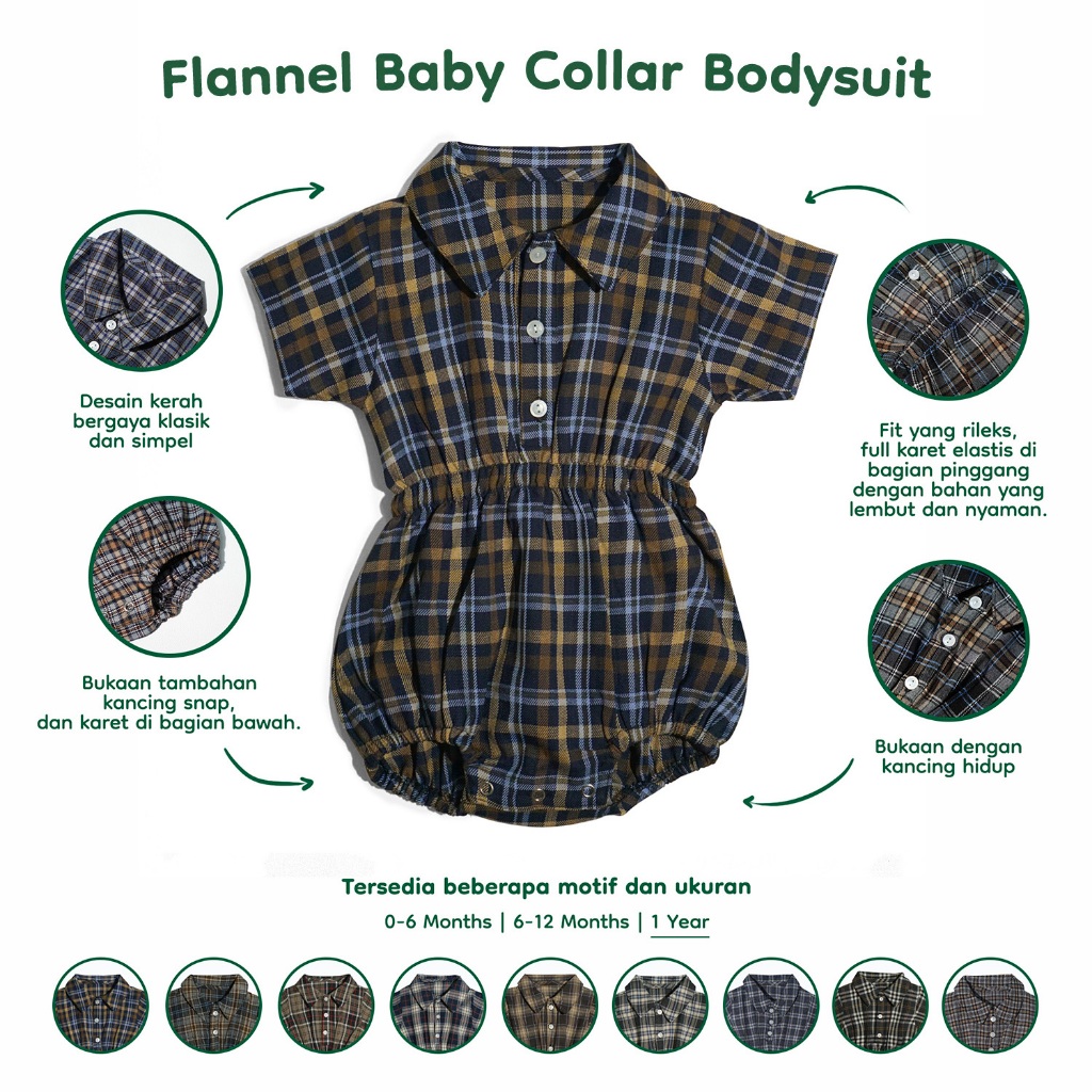 BEBE SHOP Flannel Baby Collar Bodysuit (Jumper Romper Bayi Unisex Laki-laki Perempuan