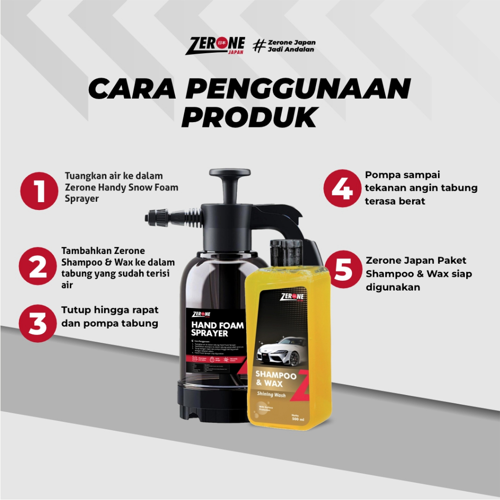[ Paket Shampoo + Hand Foam Sprayer ] Zerone Japan Sabun Cuci Motor Tanpa Sentuh Shampoo Mobil & Wax