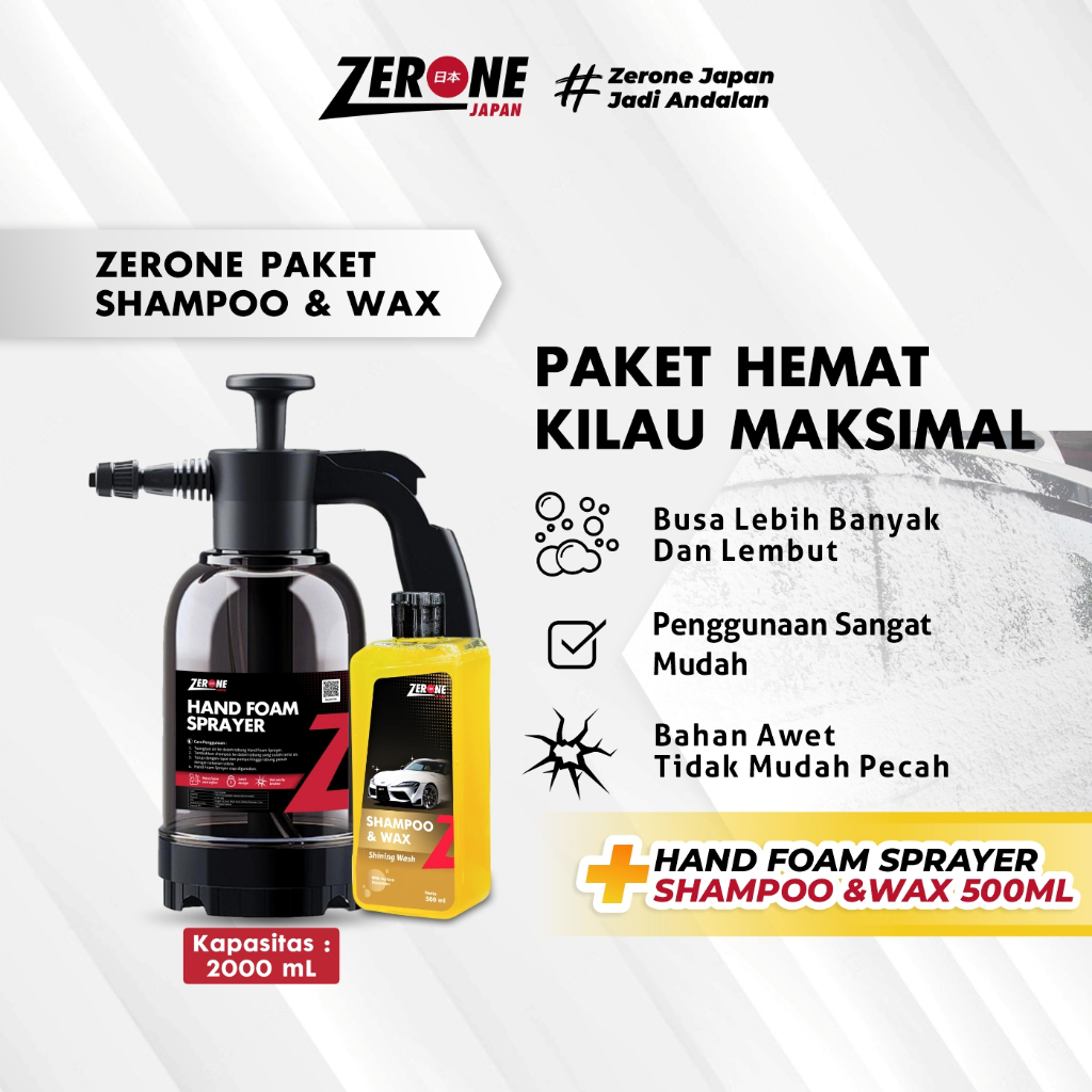 [Paket Lengkap Cuci Kendaraan] Zerone Shampoo & Hand Foam Premium Sprayer Alat Semprot Cuci Mobil Motor Salju Snow