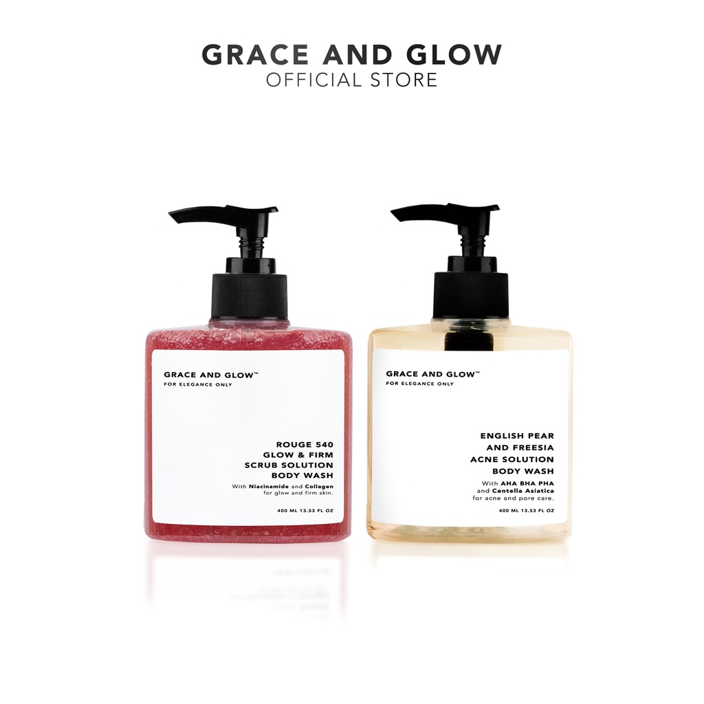 BUNDLE 2 PCS BODY WASH | Sabun Mandi Cair | Grace and Glow English Pear and Freesia Anti Acne Solution + Rouge 540 Glow
