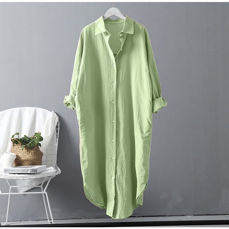 Tunik Crinkle Baju Atasan Wanita Lengan Panjang Polos Kemeja Oversize Kekinian