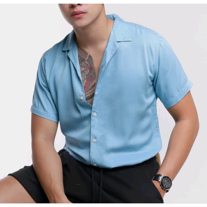 (Gratis Ongkir) Kemeja Polos Vintage/Kemeja Pria Lengan Pendek/Kemeja Pantai/Kemeja casual/Kemeja Vintage 2023