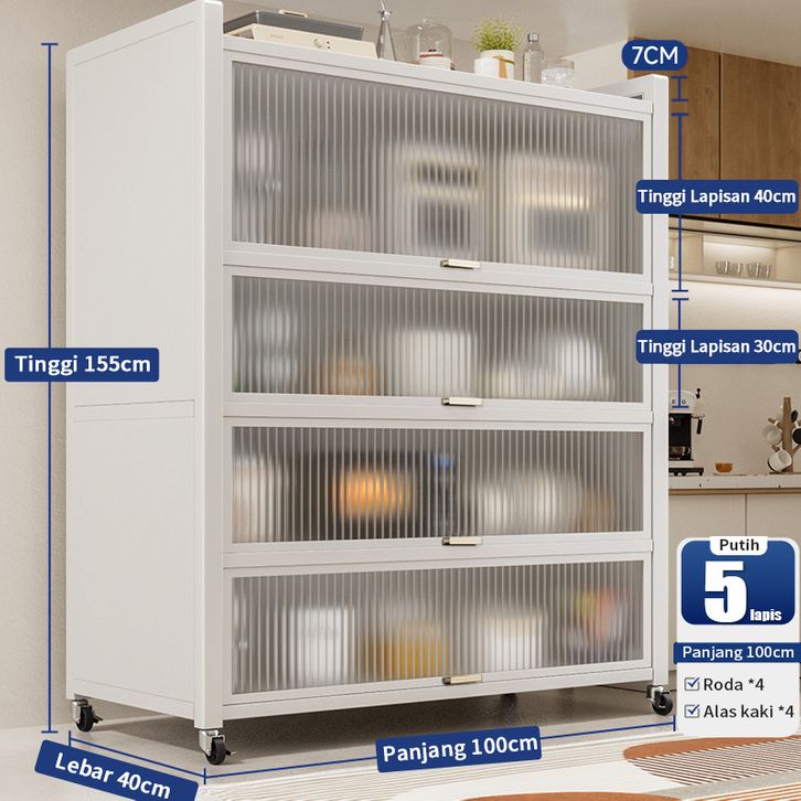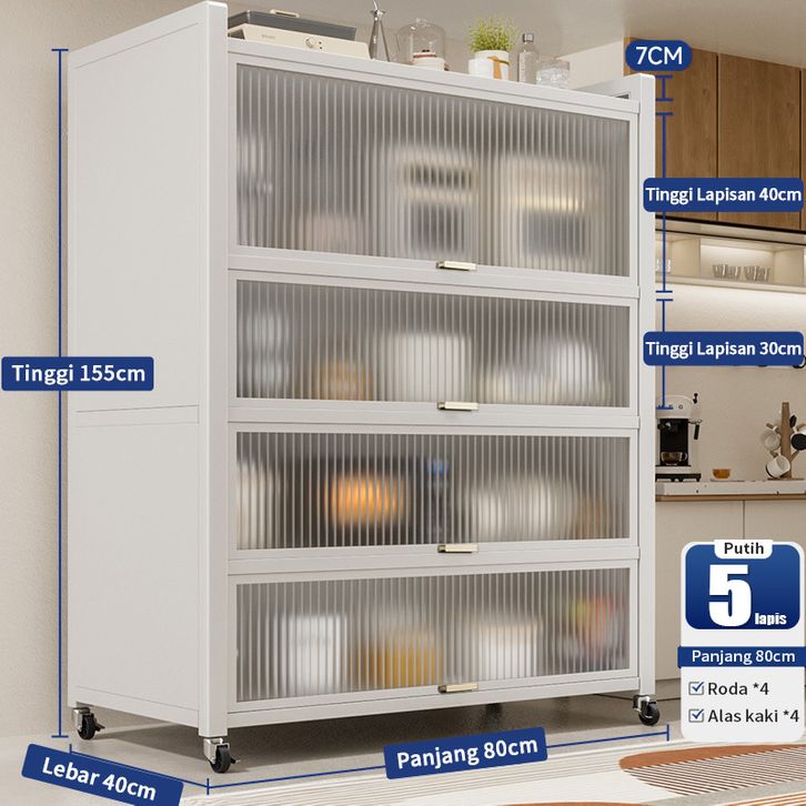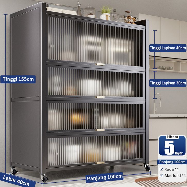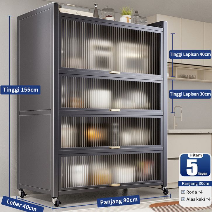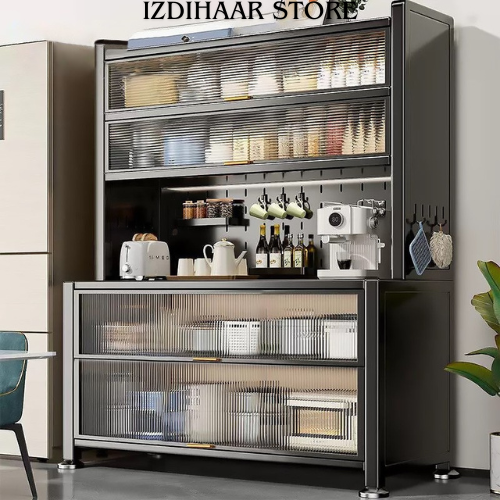 Rak Dapur Lemari Dapur Dengan Pintu Rak Penyimpanan Microwave Oven Rak Multi-Lapisan Lemari Piring Lantai Berdiri Rak