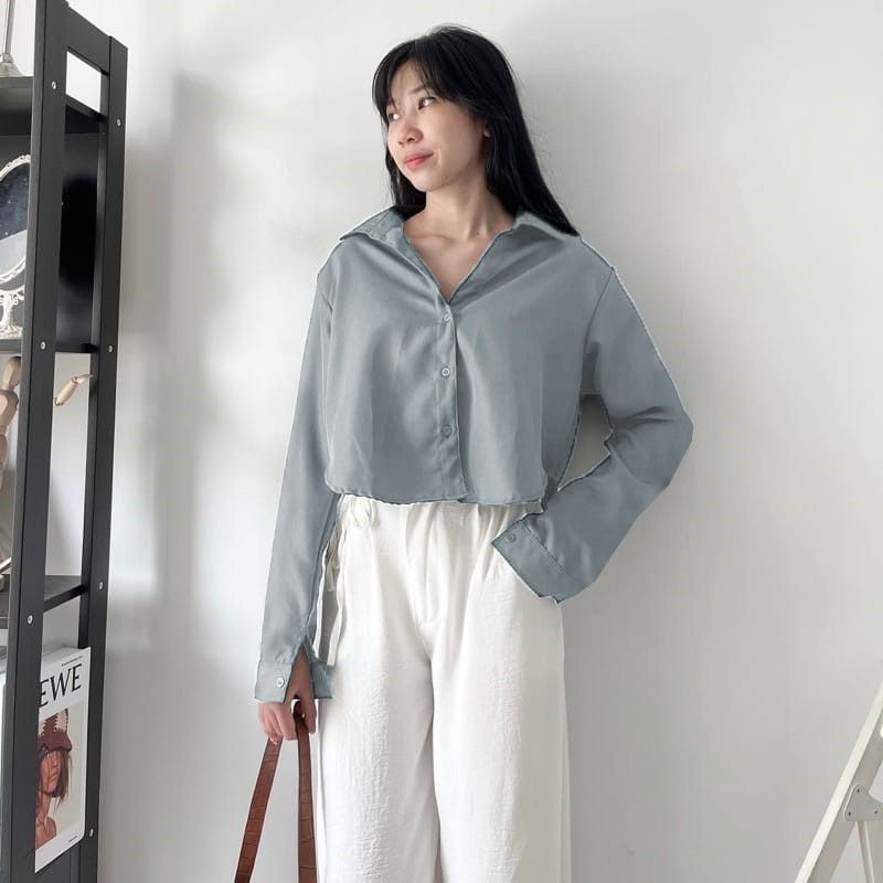 (Gratis Ongkir) RIABELA KEMEJA CROP,KEMEJA CROP WANITA.