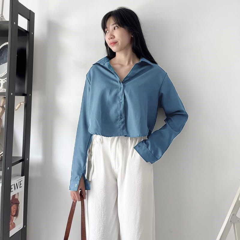 (Gratis Ongkir) RIABELA KEMEJA CROP,KEMEJA CROP WANITA.