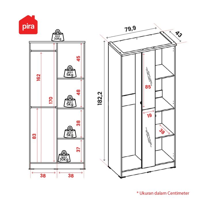 lemari pakaian Pira Metropolis OX - Aruna 2P A Lemari Pakaian 2 Pintu TERLARIS