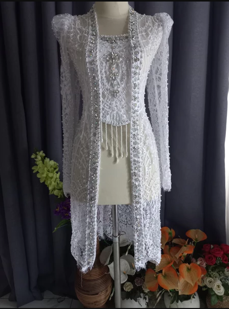 Kebaya pengantin kebaya akad kutu baru santili selutut tangan ngembung - tabur mutiara