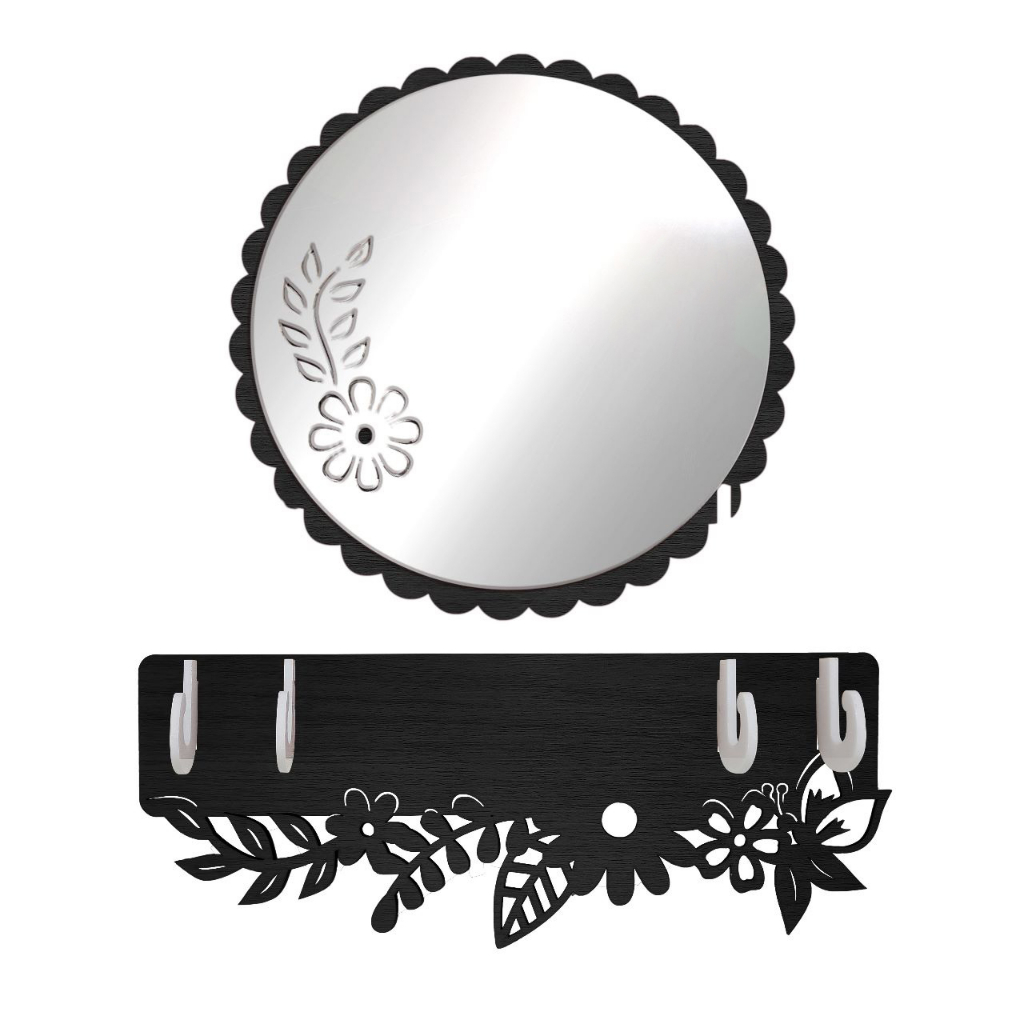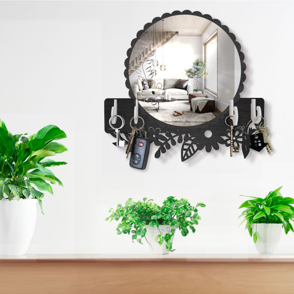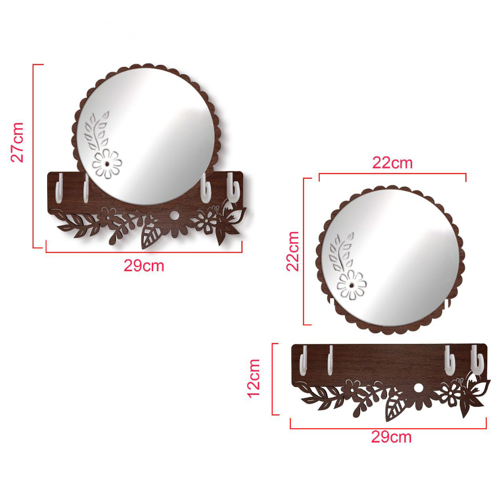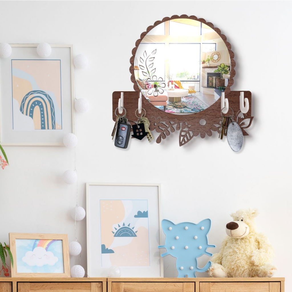 Hiasan Dinding Cermin rylic Motif Bunga dan 4 Gantungan Kunci M1036