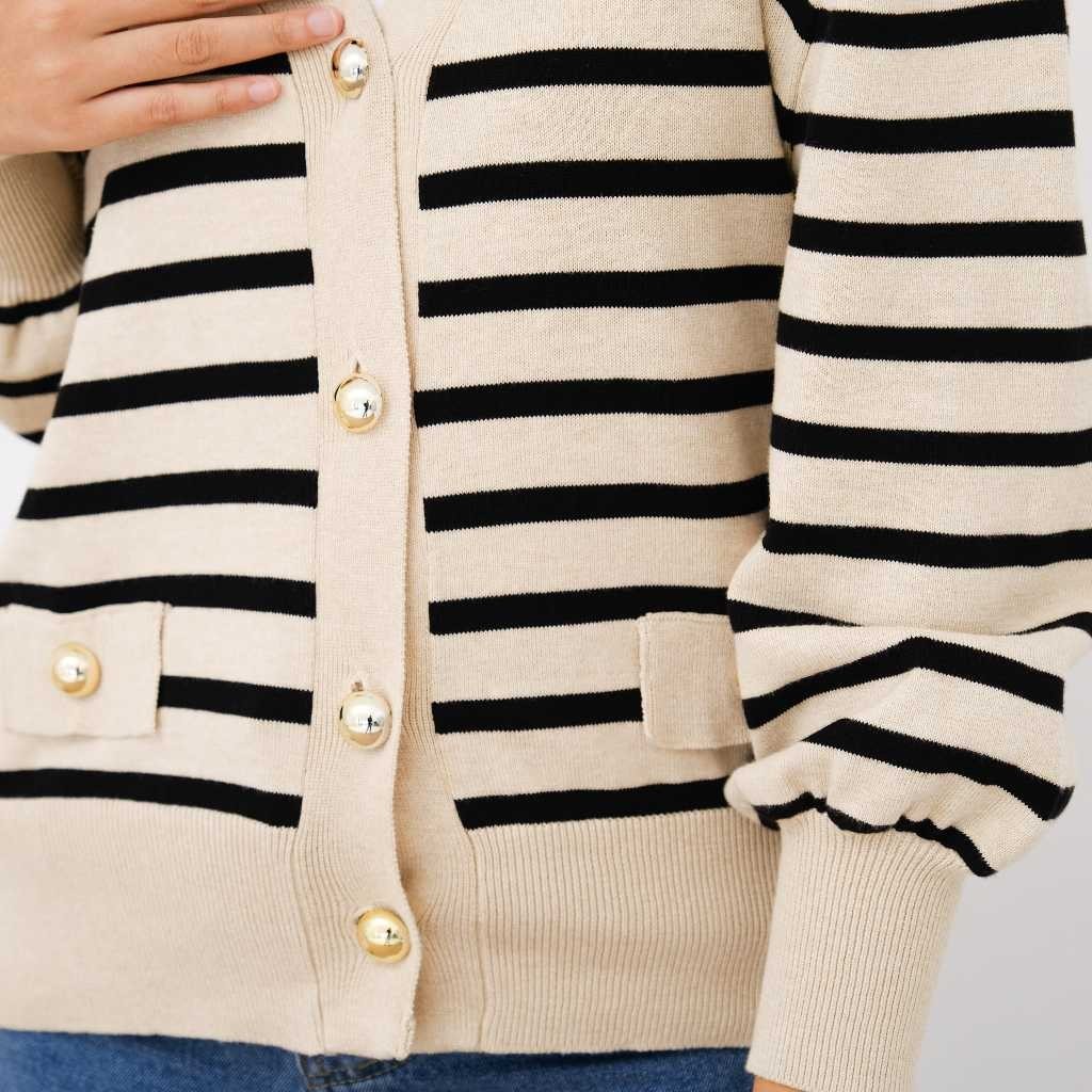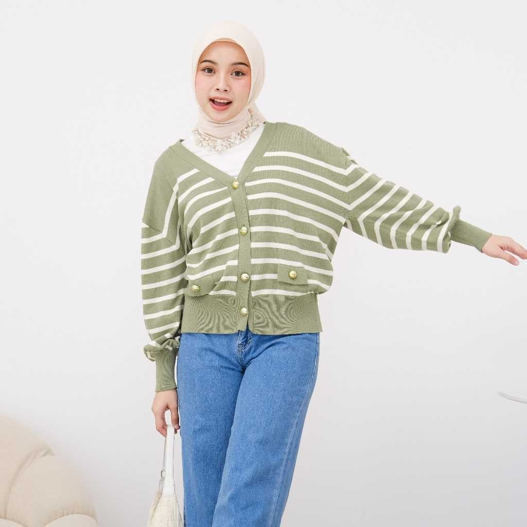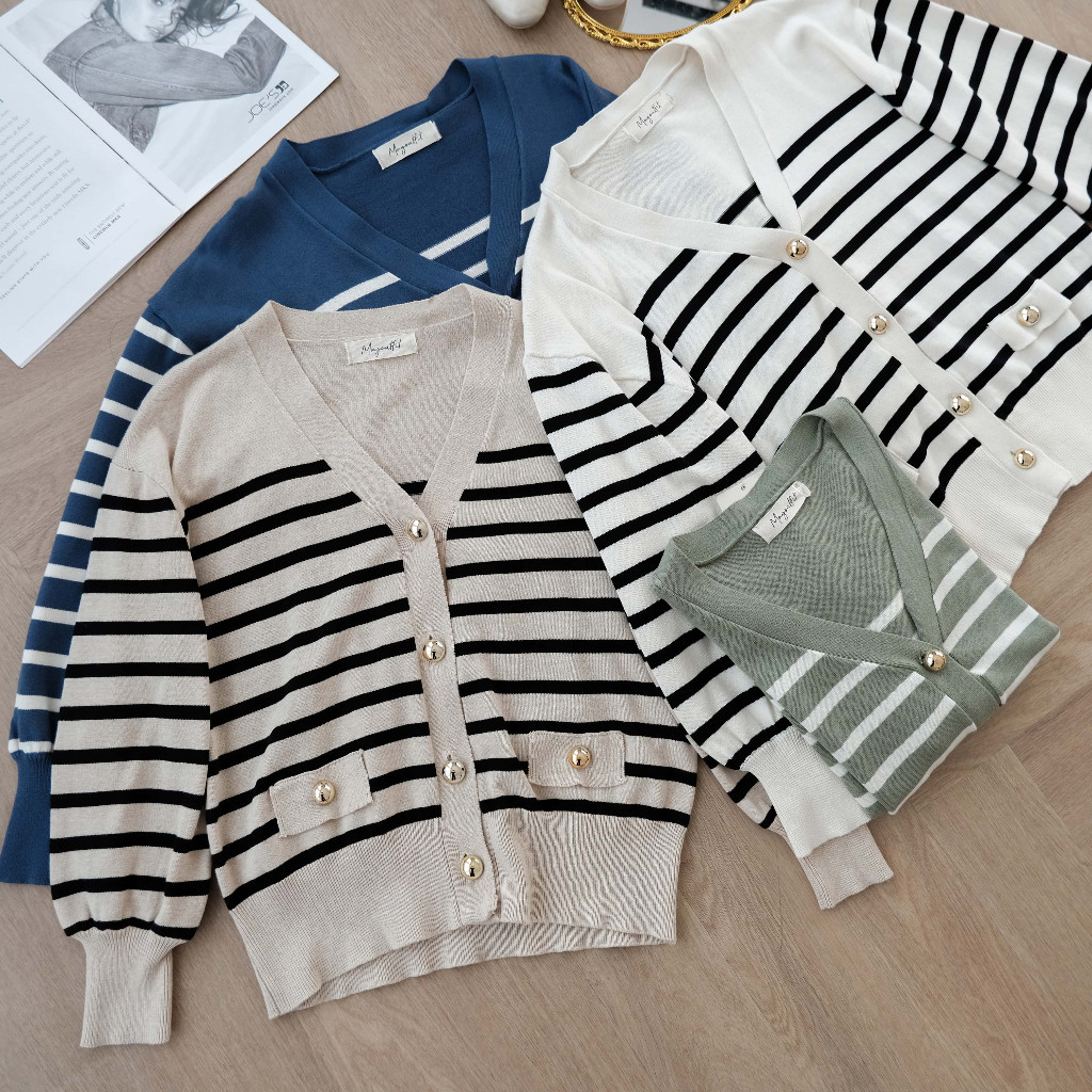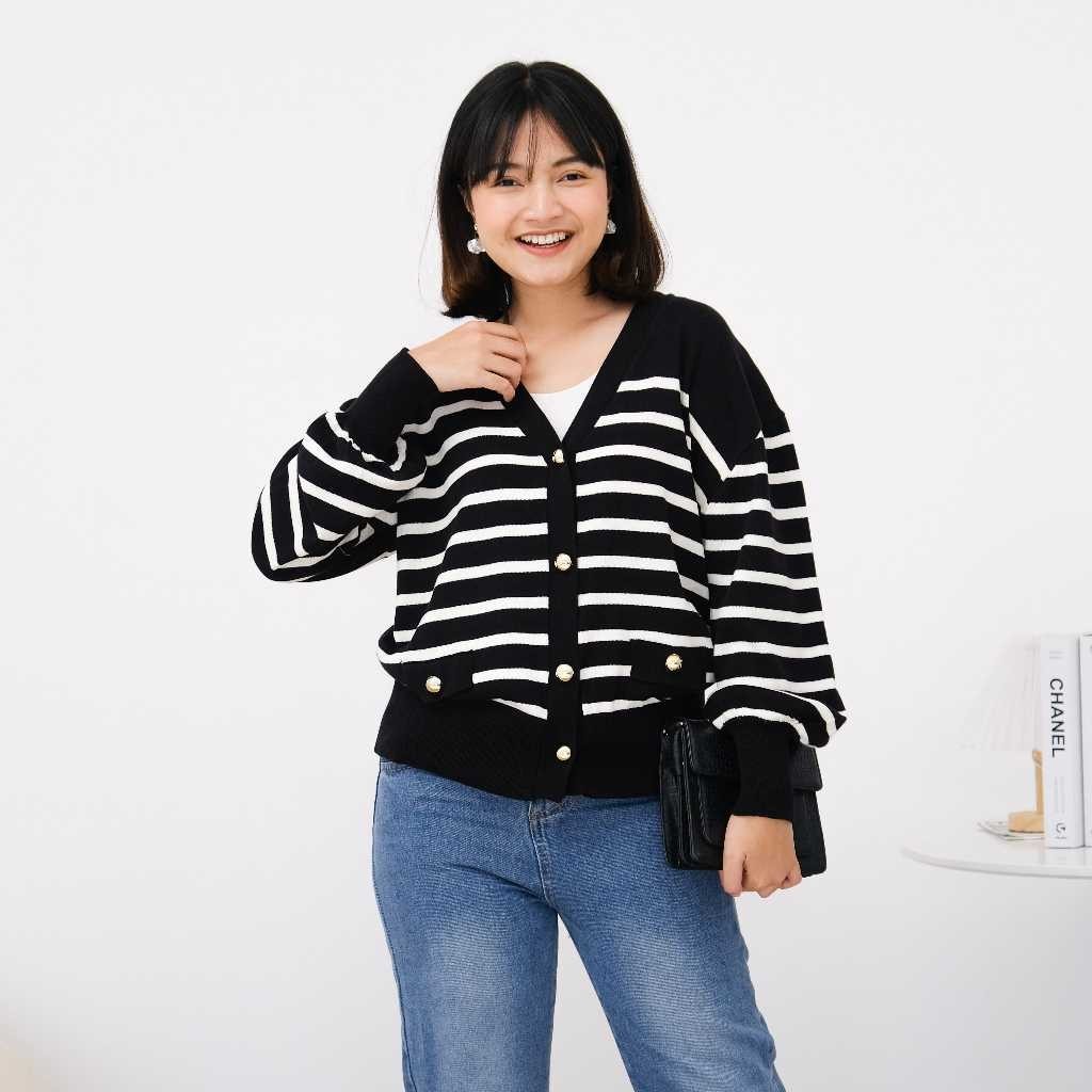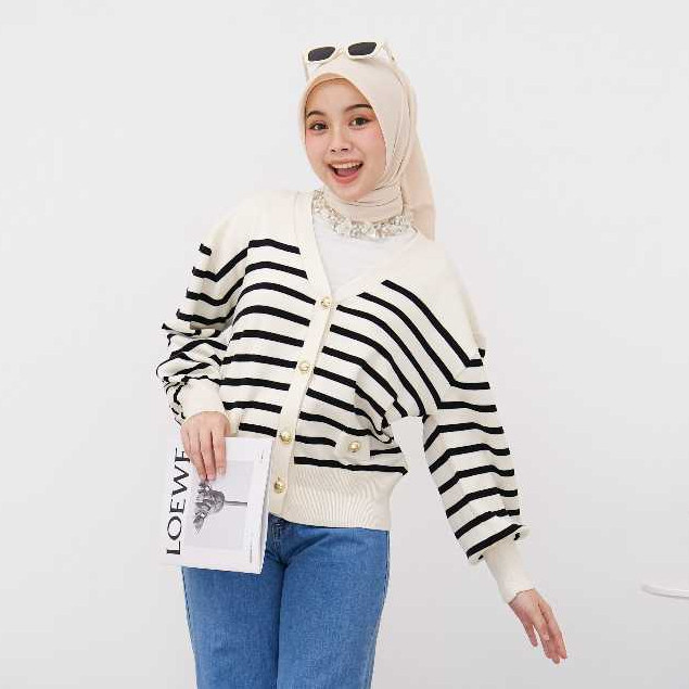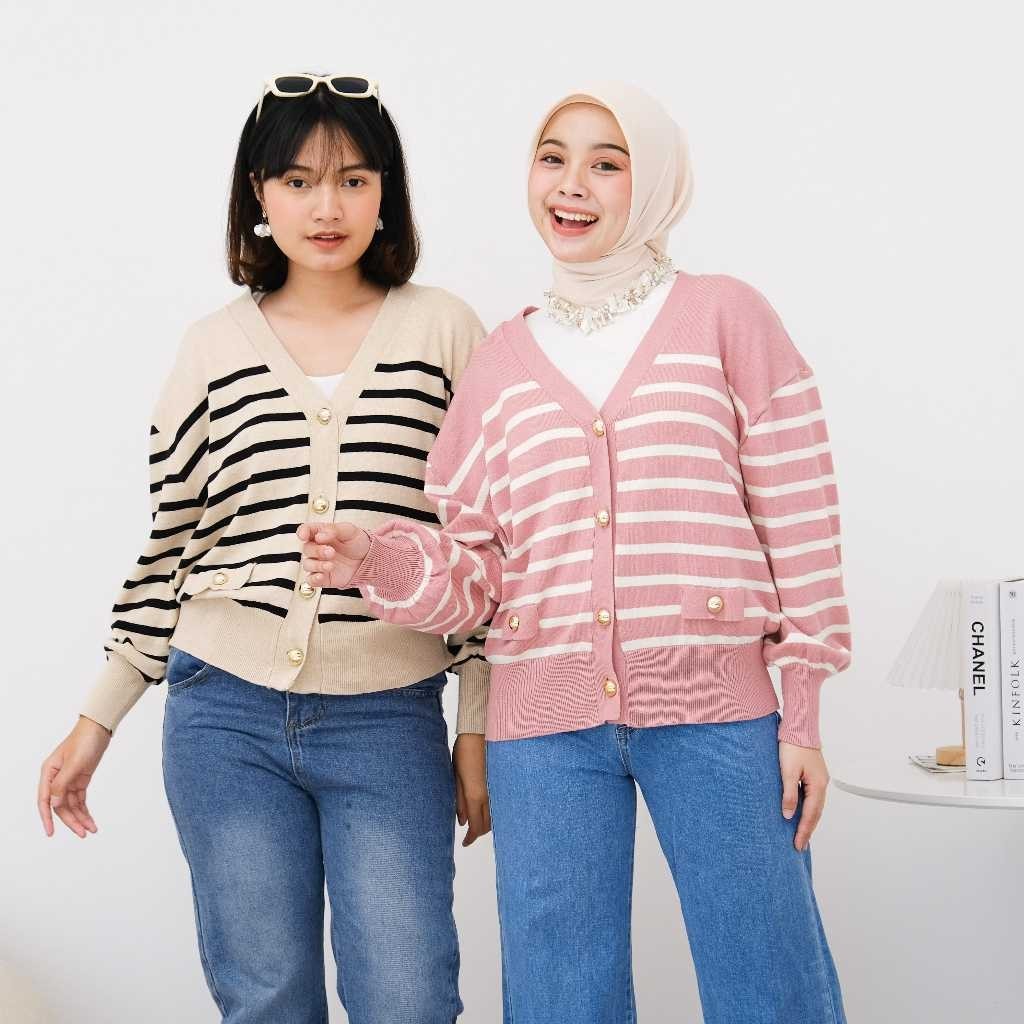 Cardigan Rajut Knit Wanita Motif Stripe – Kamaniya Cardigan Stylish Lengan Panjang Casual Outfit