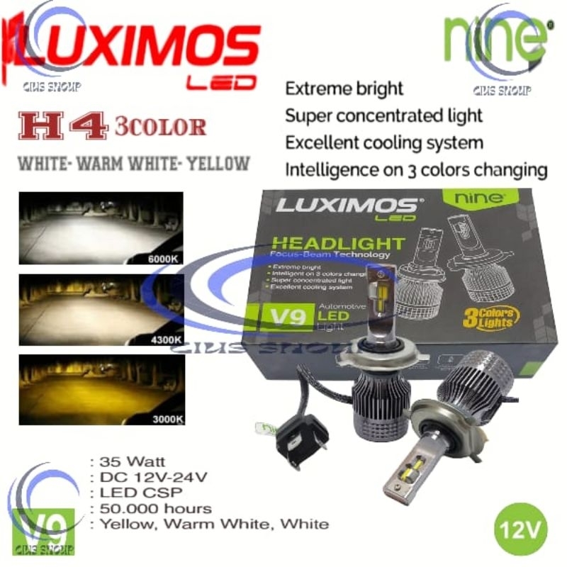 LAMPU UTAMA LED MOBIL H4 V8 1WARNA DAN V9 3WARNA CUT OFF LUMINOS HI-LOW 46 WATT EXTREME BRIGHT UNTUK MOBIL BRIO AGYA AVA