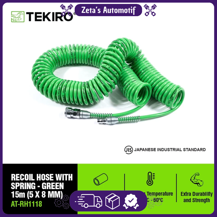 TEKIRO RECOIL HOSE 15 METER HIJAU WITH SPRING /SELANG SEPIRAL / TOOLS - ALAT PERKAKAS
