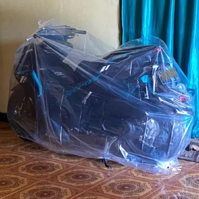 SARUNG COVER MANTEL MOTOR MURAH TRANSPARAN BENING UNIVERSAL ANTI AIR DAN ANTI DEBU UKURAN STANDAR DAN JUMBO L DAN XL